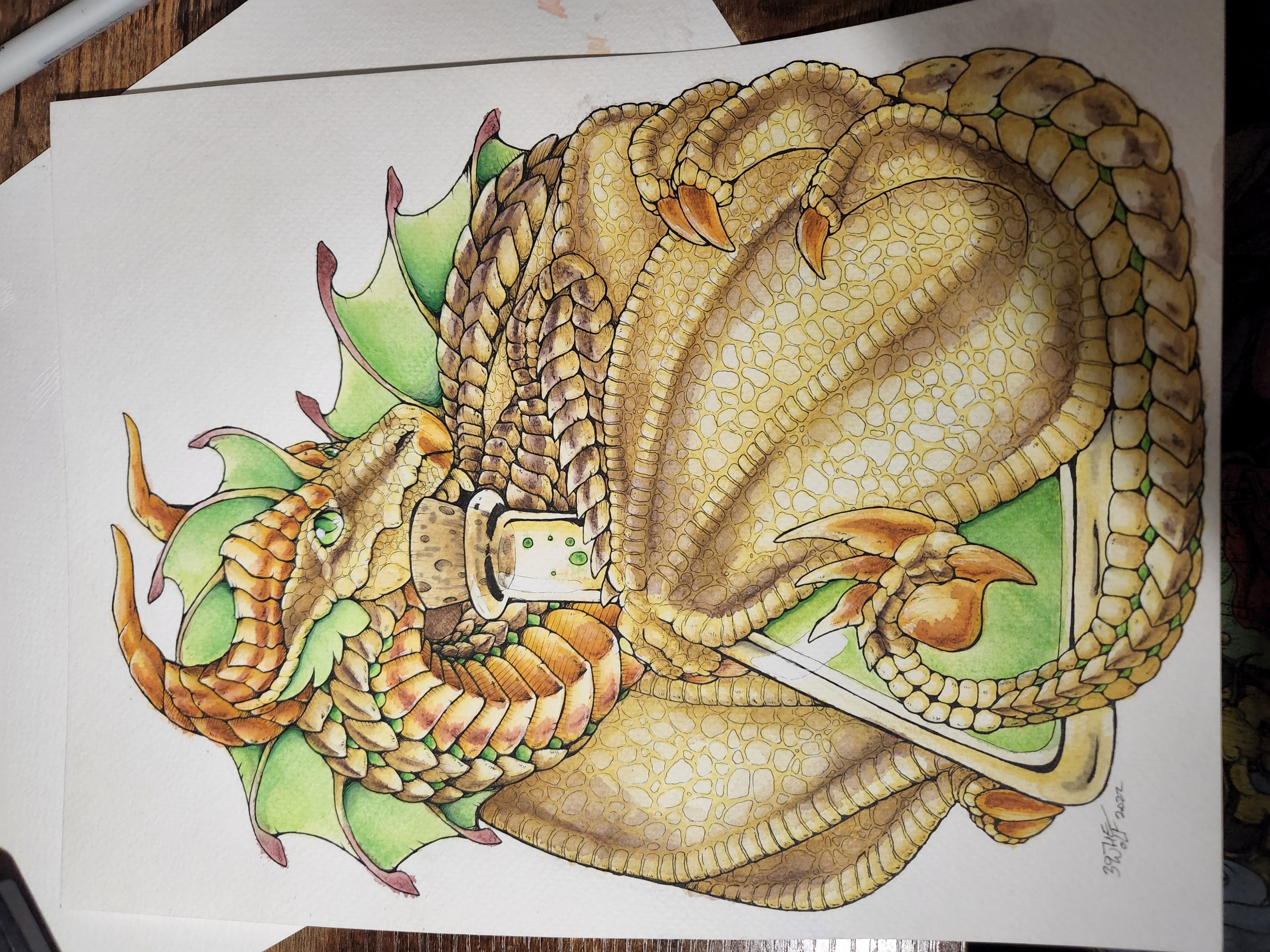 Mixed media: inktense pencil, alcohol markers, colored pencil on watercolor pencil.My second potion bottle dragon! I think I did ok making it look metallic. Mixed media: inktense pencil, alcohol markers, colored pencil on watercolor pencil.0 Comments 0 Shares 16 Views -