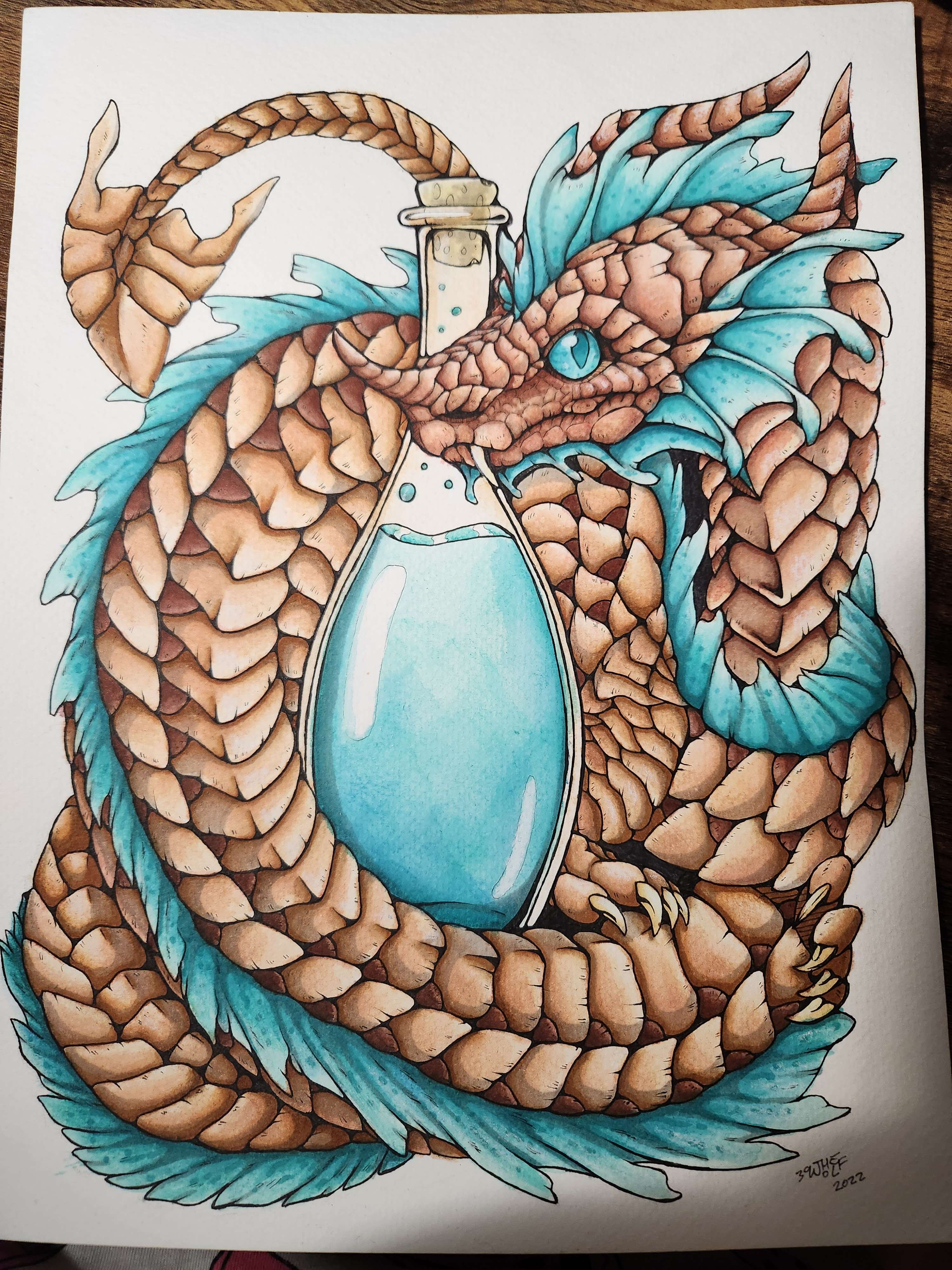 Derwent Inktense pencils, alcohol markers, and colored pencils on watercolor paperAnother Potion Dragon! A coppery colored cutie with a teal potion. I am hoping when I have more funds I can get all these turned into stickers, pins, ect Like my work? Support me on Ko-fi: https://ko-fi.com/I3I7DVYN I have a Teepublic: https://www.teepublic.com/user/39thewolf Follow me on Bluesky: https://bsky.app/profile/39thewolf.bsky.social Derwent Inktense pencils, alcohol markers, and colored pencils on watercolor paper0 Comments 0 Shares 16 Views -