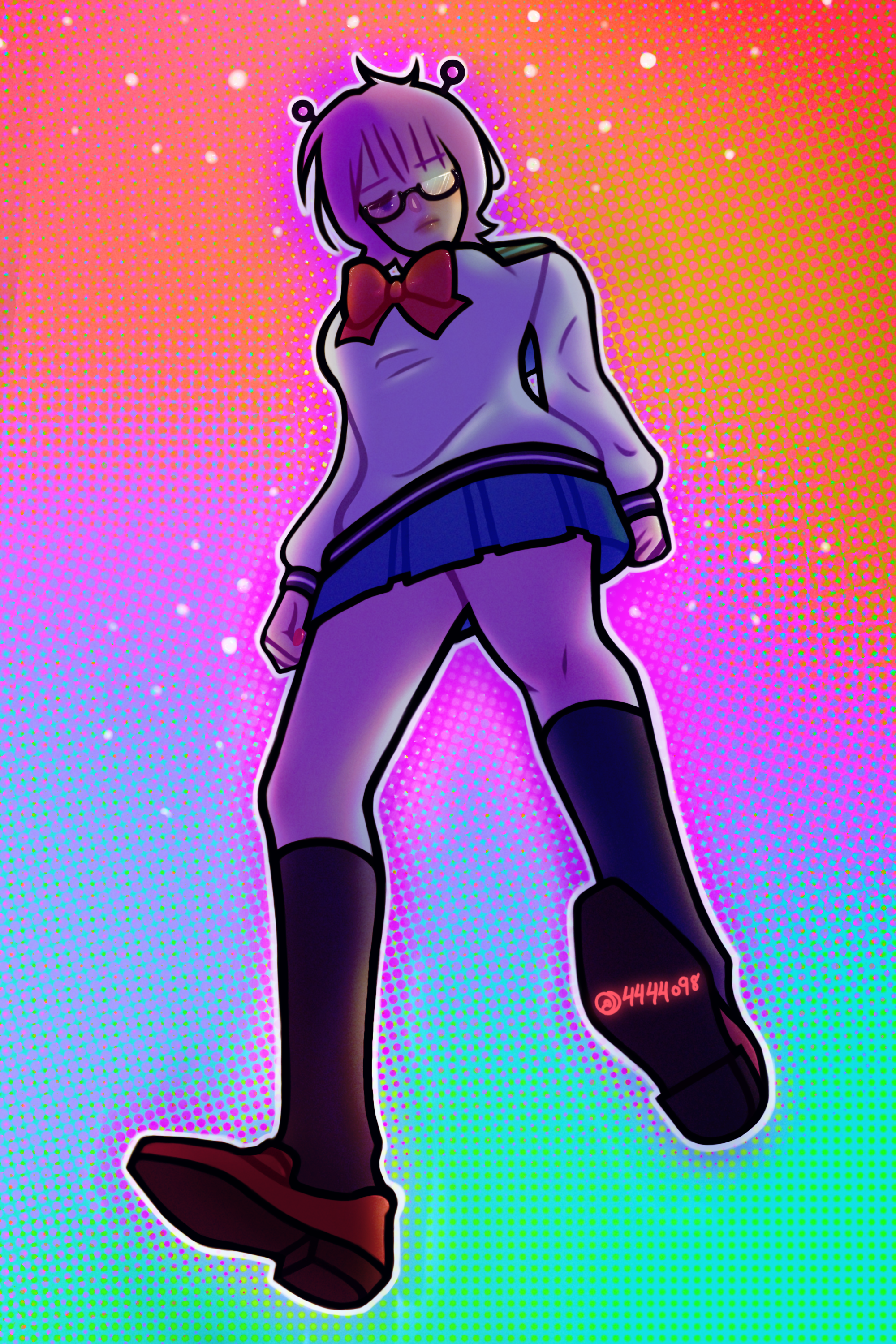 fan art of female Saiki from Saiki K hovering above the viewer with a rainbow background and pink glow radiating from herfan art of female Saiki from Saiki K hovering above the viewer with a rainbow background and pink glow radiating from her0 Comments 0 Shares 0 Views
