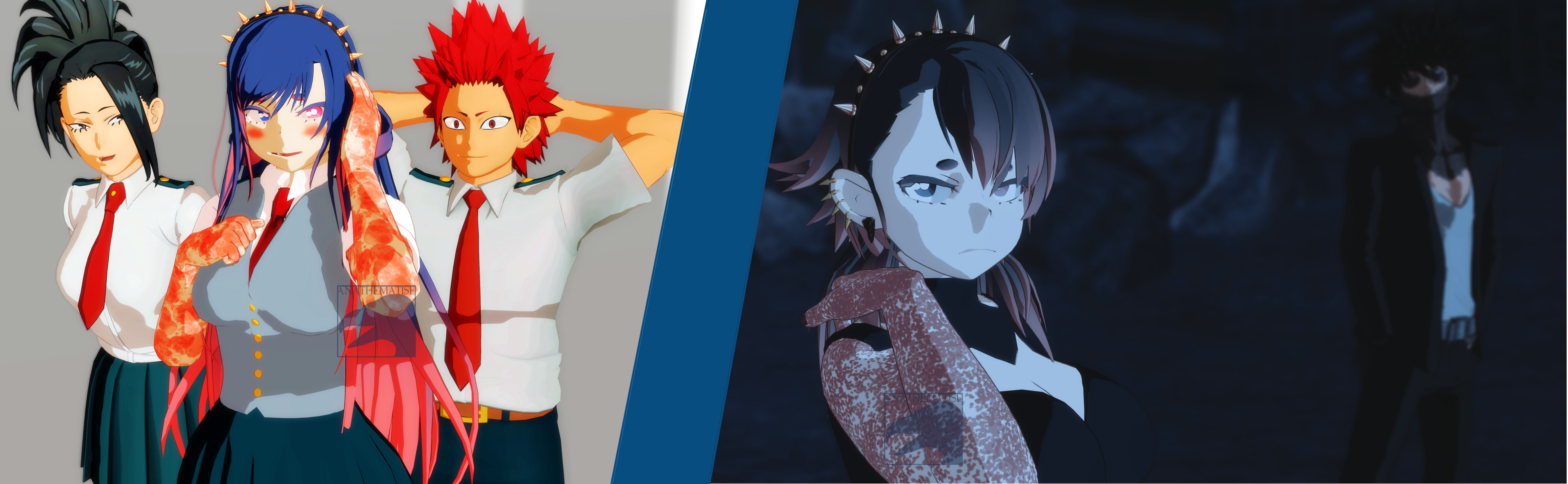 [https://ko-fi.com/abyssusinfernum](https://ko-fi.com/abyssusinfernum)After slowly getting back into MMDing, I finally finished my BnHA/MHA OC, Hanami’s, second (should be third, but I haven’t even begun her Hero look. ><; lol) outfit, her LoV (league of Villains) look (right/second picture)~ C: Honestly I’m so happy I got to use it for a picture~ C: Granted I did have issues with the picture, especially the first one on the left... I felt so dissatisfied and really lost... I felt no matter what effects I used it looked awful and the second one looks great (still kind of do), but after thinking on it and talking with some friends, I realize that I haven’t touched MMD since I was forced on a hiatus for a few years, so I’m just rusty and need to re-find my footing/style~ So please look kindly on me and be patient as I relearn MMD~ ------ Now, on to crediting! Models [Hanami (School (left) and LoV (right))](https://sta.sh/0qv9eumelct) Momo Horikoshi Kouhei, Bandai Namco, Silverado117, ASideOfChidori, MVegeta, AnimeOtaku1020, Hottday12 Kirishima: Horikoshi Kouhei, Bandai Namco, AnimeOtaku1020, Hottday12 Dabi: Horikoshi Kouhei, Bandai Namco, grazekai, StekinoMai Stage: School: Horikoshi Kouhei, Bandai Namco, Emidikun, Xelandis Destroyed City: Horikoshi Kouhei, Bandai Namco Poses: Me Anathematise MME: カヤ, おたもん, そぼろ, 針金P, ikeno, OH!YEAH!!, ぐらむ, 世紀末夢女/glam ------ That should be everything! If I’ve forgotten anything please kindly let me know, so I fix it ASAP~ C: _Also if you like what I do and are able to, than please donate to my Ko-Fi down below or the tip jar on the left side of my profile! With our landlady going to hike rent. Again. For the fourth time, and food quickly becoming a luxury almost, every little bit helps immensely~_ [https://ko-fi.com/abyssusinfernum](https://ko-fi.com/abyssusinfernum)0 Comments 0 Shares 7 Views -