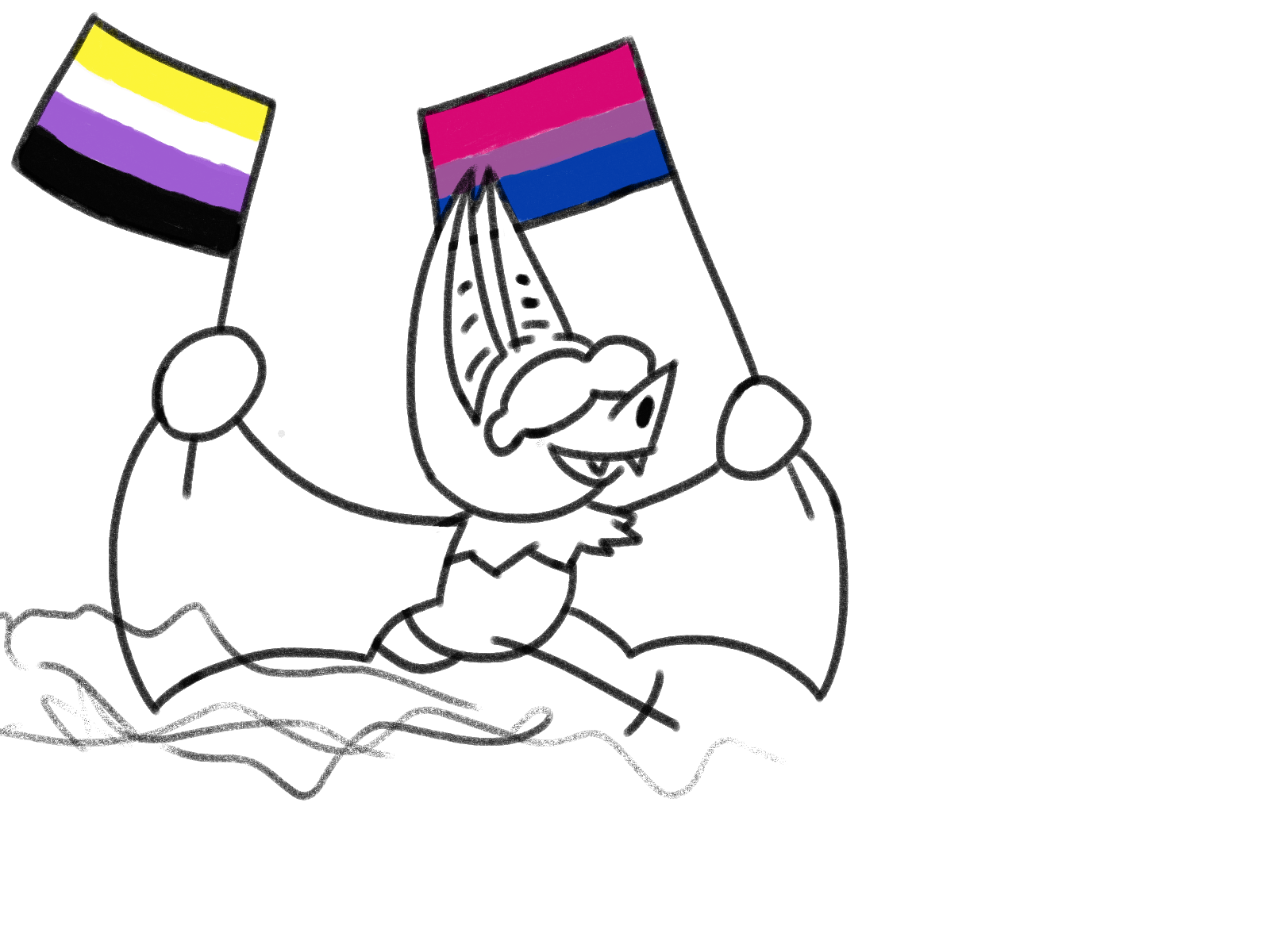 But as for how I am... I'm fine i guess a lot of stuff still SUXX but I'm still moving and that's awesome :D!!! But recently while exploring my identity for the past 2-3 years I think I can come out and say that I ------->THINK<-------- that I am enby and bi. So thas kewl and also happy pride month! Sorry for being late AND not having any sort of art to celebrate..............................YET.