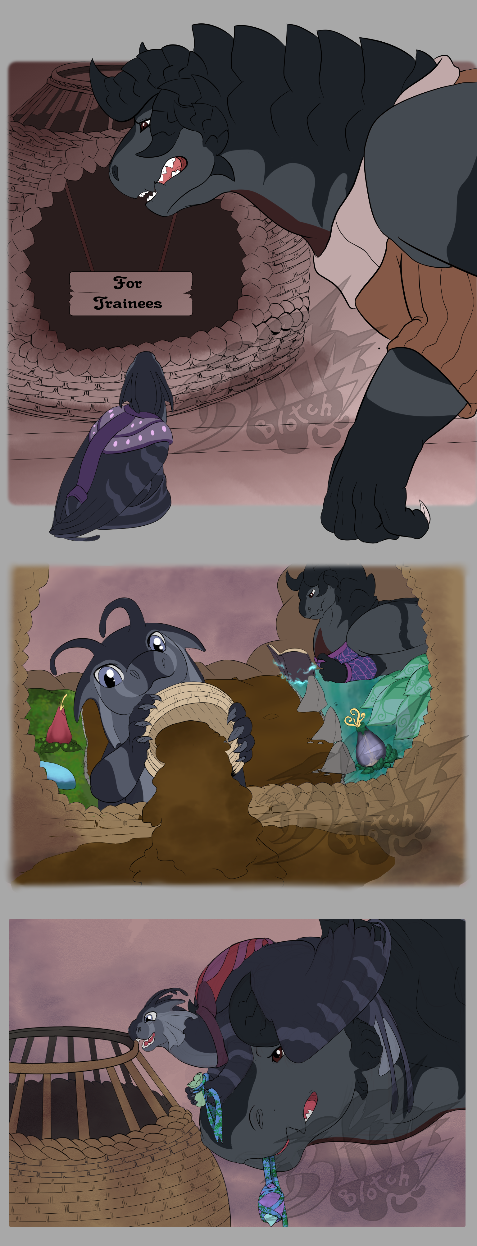 1. Upon accepting a dreamweaver, the first right of passage is to allow the trainee to pick out their first weaver basket. These first baskets are made by dragons graduating from the weaver course and are free for trainees. They are worn down easily as they are deliberately not made of the sturdiest materials and its deterioration is a sign for the mentor to start teaching and working with their younglings to help build a sturdier basket and learn repair techniques; Allowing the old basket to deteriorate into the soil of the old one, wasting as little material as possible