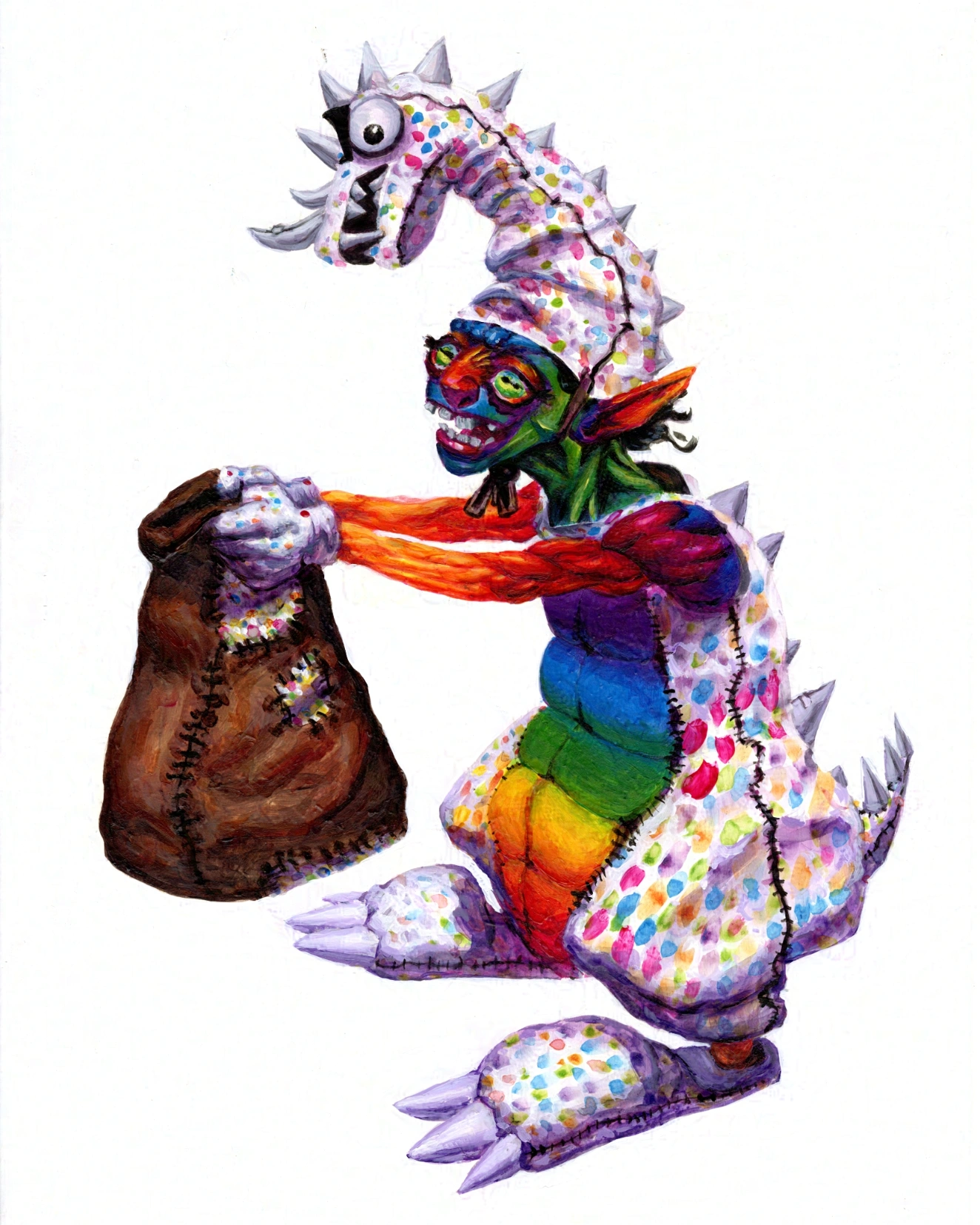 Acrylic painting of a goblin in it's home made dragon costume.Acrylic painting of a goblin in it's home made dragon costume.0 Comments 0 Shares 1 ViewsPlease log in to like, share and comment!