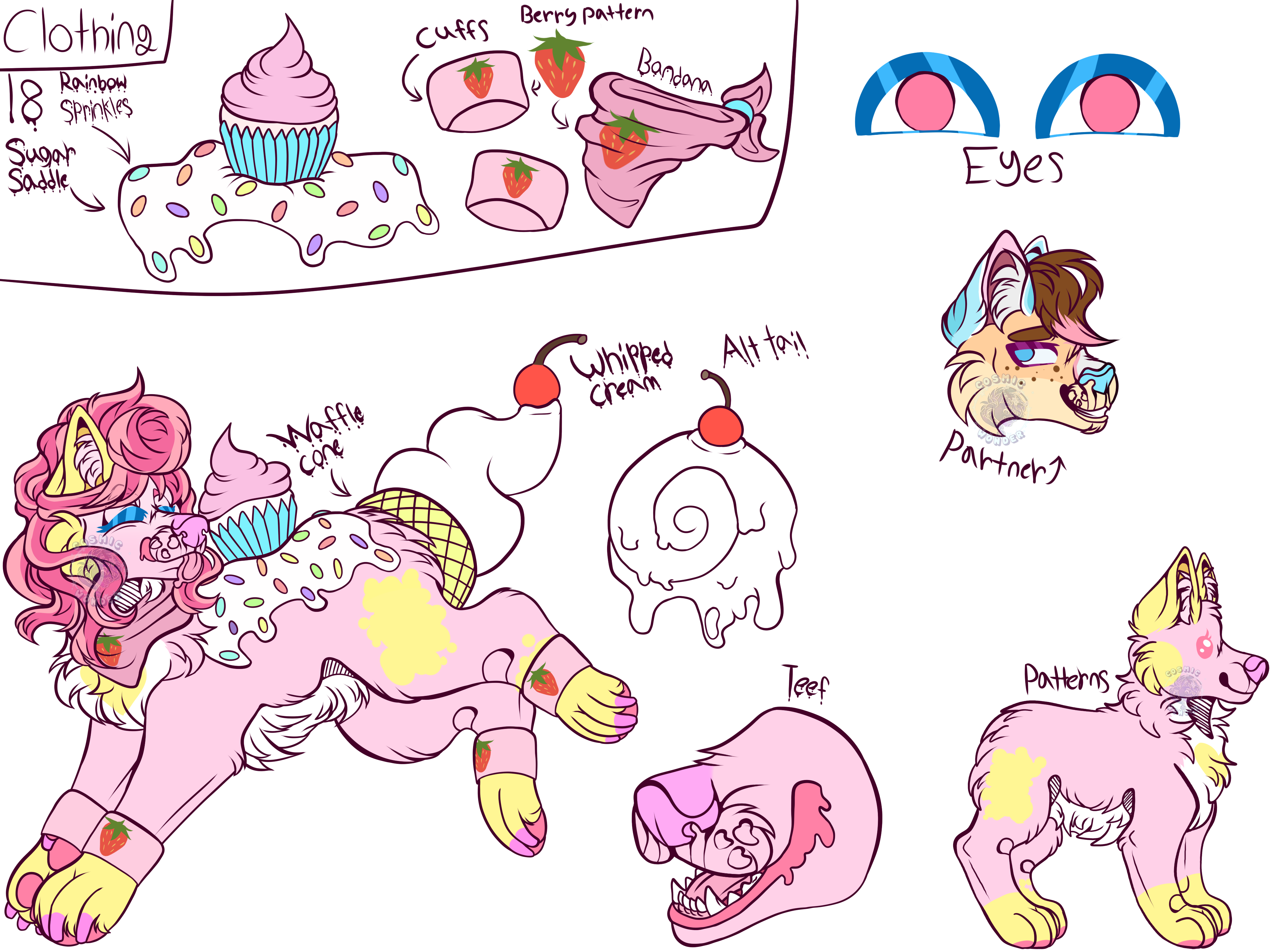 Reference sheet of one of my oldest OCs, Sugar Tip. Her actual name is Seraphina Swirls. I haven't really fleshed her out till recently, so I'm happy she has more personality than before.