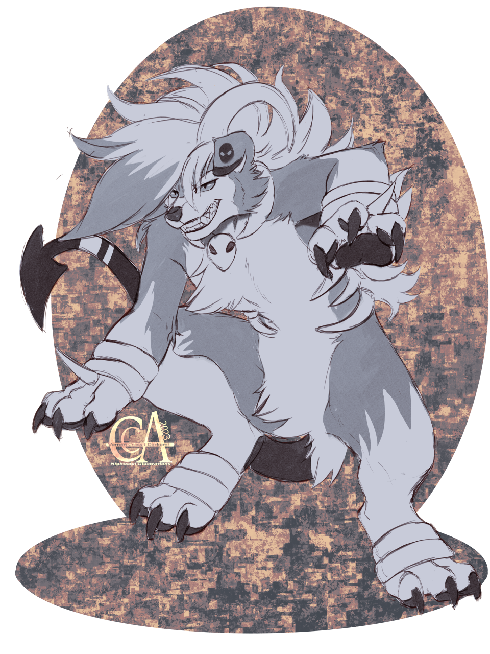 sketch commission from my bestie of their Pokesona who is a mix of lycanroc and houndoom :D it was fun trying to figure out how to draw this character cause i don't draw pokemon very often.