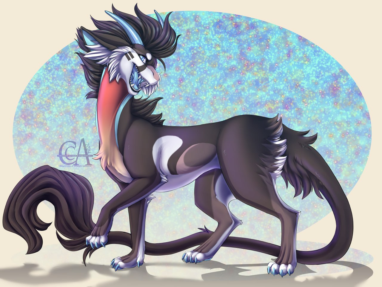 It was tough getting her markings juuust right but also i really love how the final results came out so ToT <3 she's a really cute design!