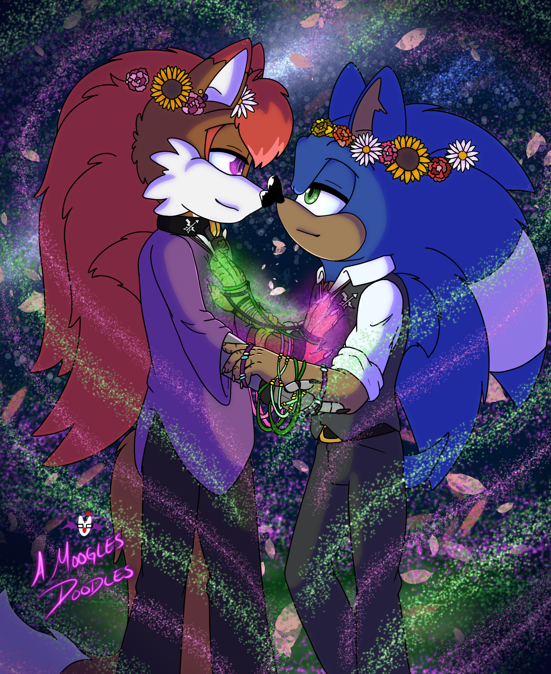 I want to catch up on the amount of art I haven’t posted lately. Here’s one from the thread on tumblr with Arrow and Volt having a lovely handfasting ceremony.