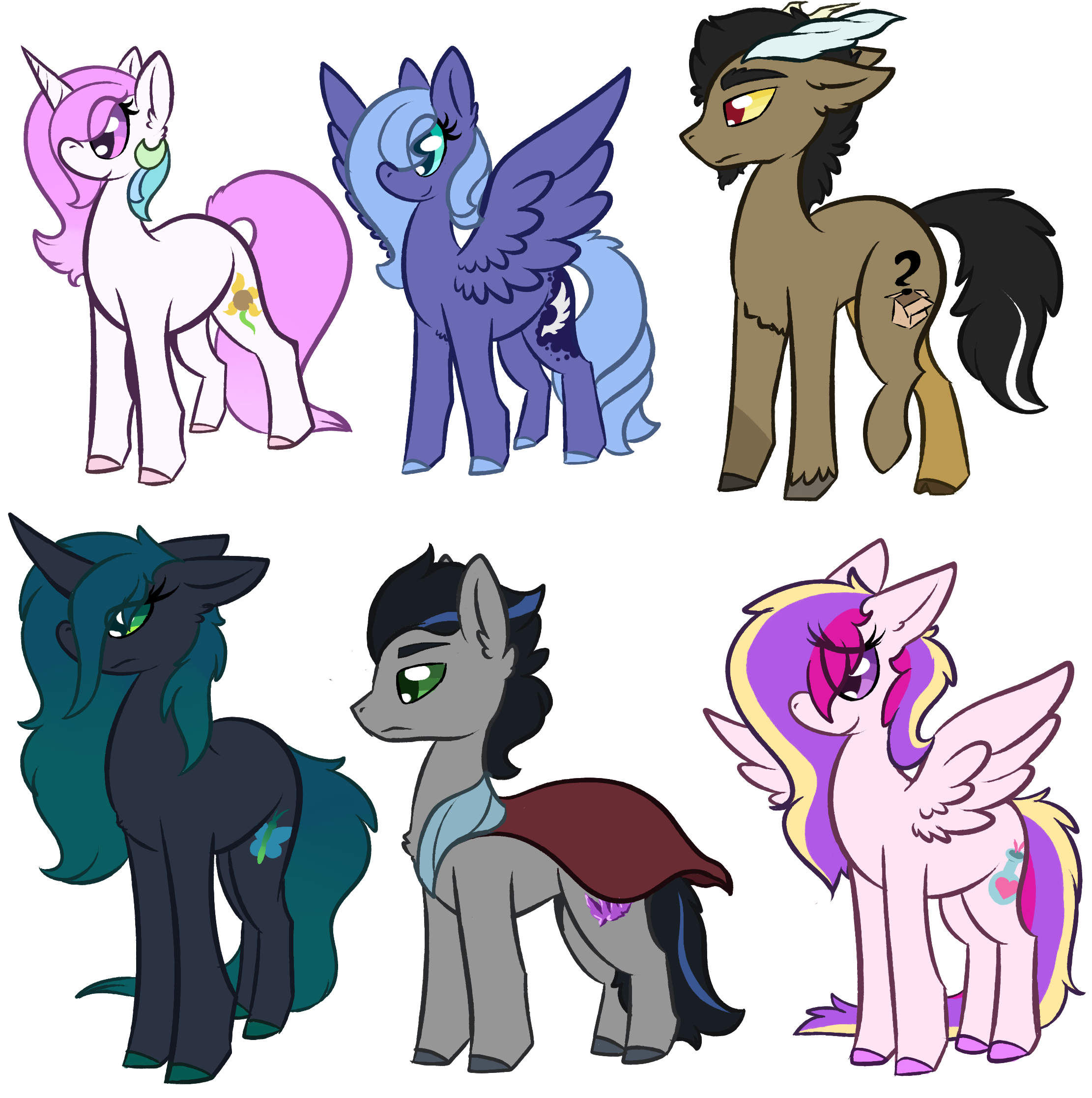 Please do not post on other sites without permission. Please do not trace, edit or make a base of this artwork. Do not use my artwork for roleplaying or social media posts.Originally made in May of 2017 Original text: dabbling in a bit of pony stuff. I've had this idea since 2013 that I've dubbed 'Tiaverse'. * Celestia - Lives in the poorer area of Canterlot, as a unicorn she has a magical talent for manipulating nature like flowers and plants. Nicknamed 'Tia' * Luna - Lives with her sister as a weather worker for Canterlot. Not as high pay as you think. * Discord - Not a chaos spirit but a spell gone wrong caused him to be horribly disfigured with other hooved animal traits. He is a street performer with earth pony magic. * Chrysalis - Also lives in the poor section of Canterlot. She does anything with bugs. Care for them, taxidermize them, you name it. But shes very lone wolf attitude. * Sombra - Born an earth pony, he works in the mine under the Canterlot palace. He likes the cape to keep the dust off of his back. * Cadence - Lived on the streets she now has a narrow, small potion shop to mild success. Please do not post on other sites without permission. Please do not trace, edit or make a base of this artwork. Do not use my artwork for roleplaying or social media posts.0 Comments 0 Shares 5 Views -