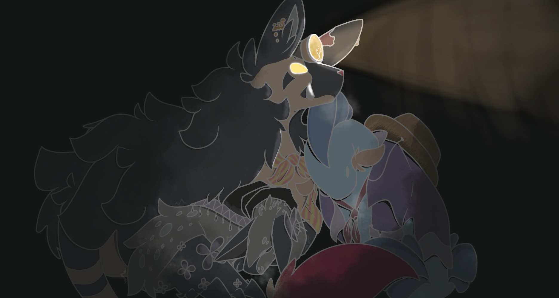 From a PMDrp I'm currently in! Characters being Ravi (Nickit, mine), Tracks (Mightyena/Smeargle, @CosmoNoodles on Twitter) and Angler (Marshtomp, @Scizkip on Twitter)