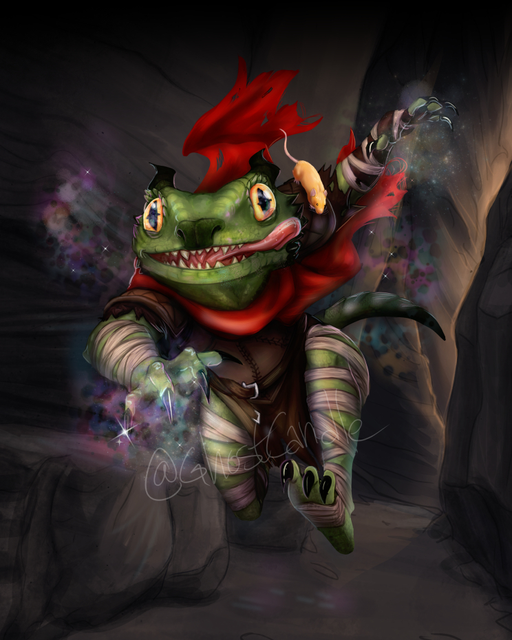(The fancy mouse he has is named Mustard.)A Kobold who believes he's actually a dragonborn... Relish is a Wild magic sorcerer/trickster rogue. He is very much a dragon fanboy, and follows Tiamat. He was such a delight to play as his campaign came to an end. He'll definately be my comfort D&D (possibly Pathfinder) character! (The fancy mouse he has is named Mustard.)0 Comments 0 Shares 2 Views -