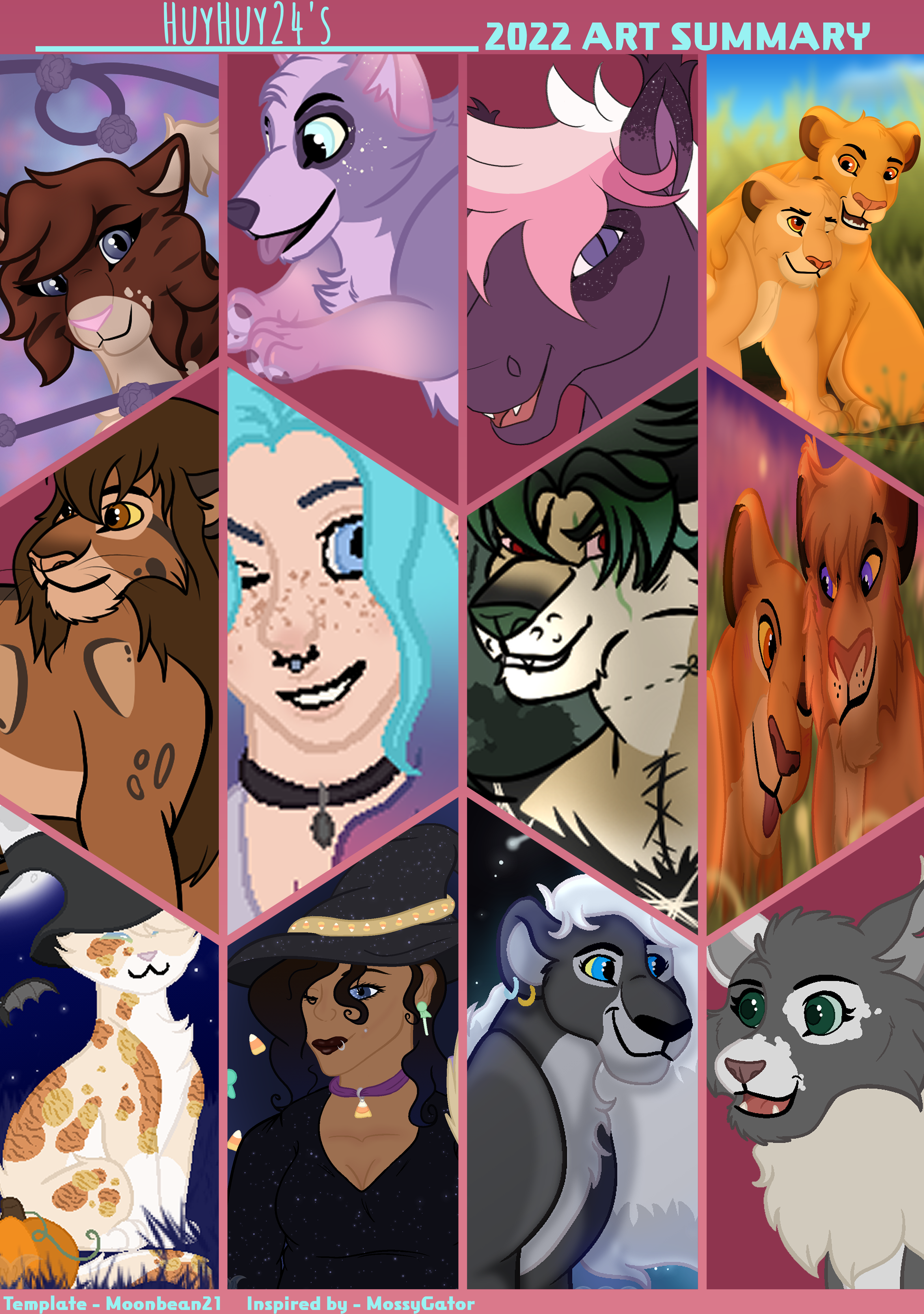Here's the template: [here](https://www.deviantart.com/moonbean21/art/2022-Art-Summary-Template-939478633).Here is my 2022 summary of art!! 2022 was.....a year. That's all I say on the subject ahaaa. A lot has gone on and I am just... ready for it to be over. I know last year I said I planned on doing more personal art this year, and I clearly didn't follow through with that aha. x.x Next year though, I'm really gonna try to do more for myself. I really and honestly do not draw enough for just myself. **Please note that the characters in January, July, and November do not belong to me, only the art! The characters in February, March, May, and December were designed by me, but belong to others!!** ------ Here's the template: [here](https://www.deviantart.com/moonbean21/art/2022-Art-Summary-Template-939478633).0 Comments 0 Shares 10 Views -