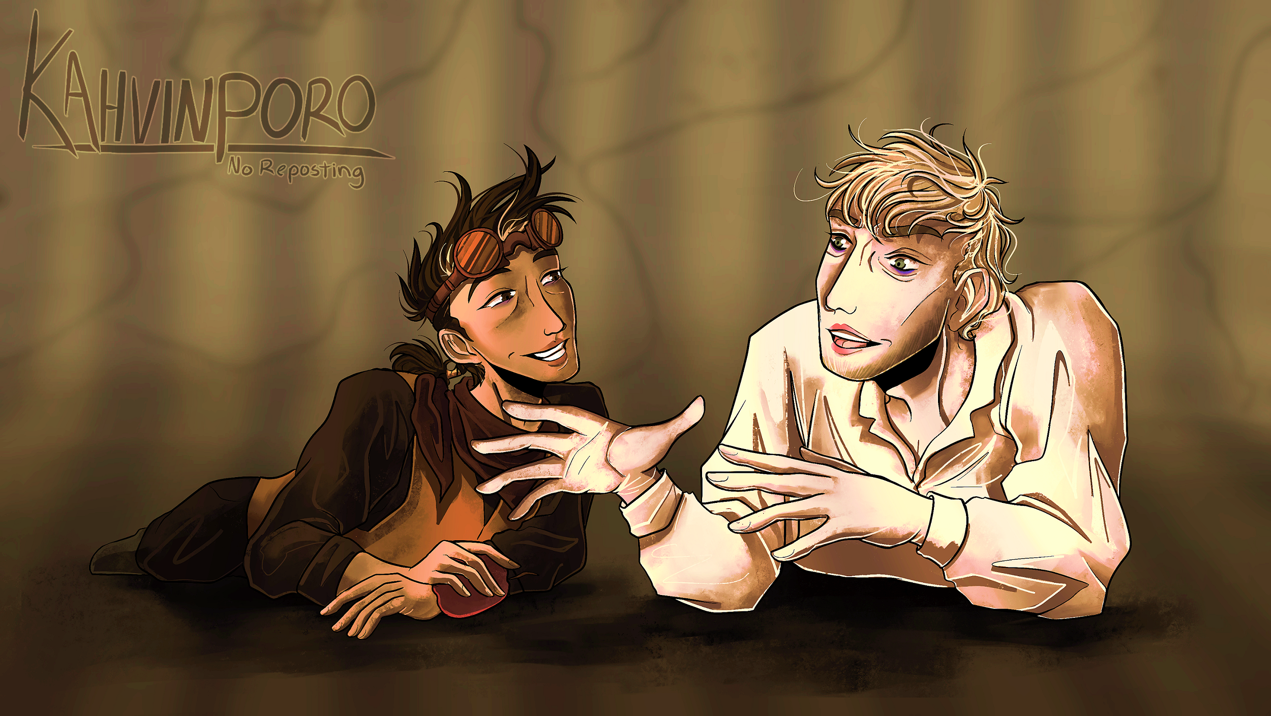 _The two men were lying on the grass, laughing as they were pointing at the funny shapes they saw in the clouds above. Shrike and Melis had gone through a lot together, but things had finally settled down and they were finally able to enjoy silly moments like this.