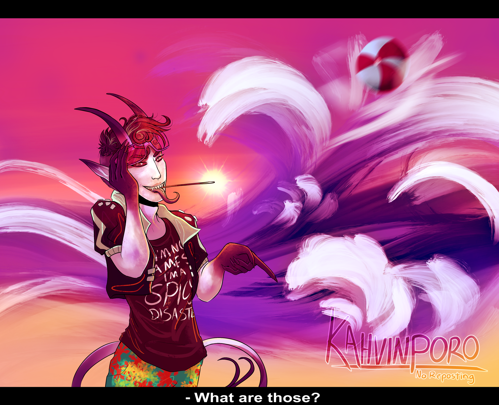 First Art Fight attack of the year, at ShemeiArt(https://inkblot.art/profile/ShemeiArt). Xanael enjoying a nice beach day.