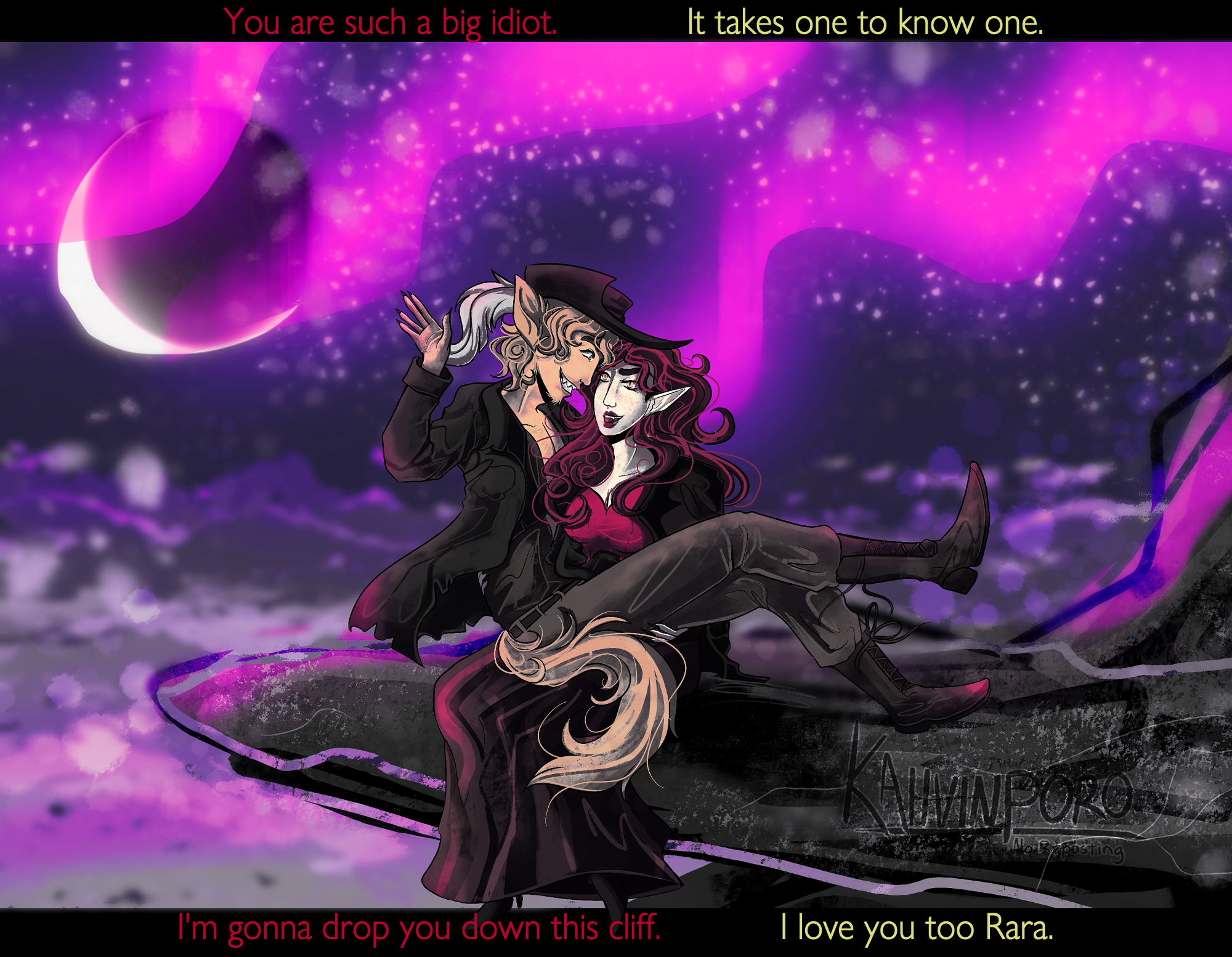 Second Pride illustration to show another oc OTP, for [Stygian Nyx](https://artfight.net/~StygianNyx)._The two men were lying on the grass, laughing as they were pointing at the funny shapes they saw in the clouds above. Shrike and Melis had gone through a lot together, but things had finally settled down and they were finally able to enjoy silly moments like this. Shrike turned to look at his husband, hearing the redhead laugh made him so happy. And he was very happy as well._ ------ Second Pride illustration to show another oc OTP, for [Stygian Nyx](https://artfight.net/~StygianNyx).0 Comments 0 Shares 39 Views -