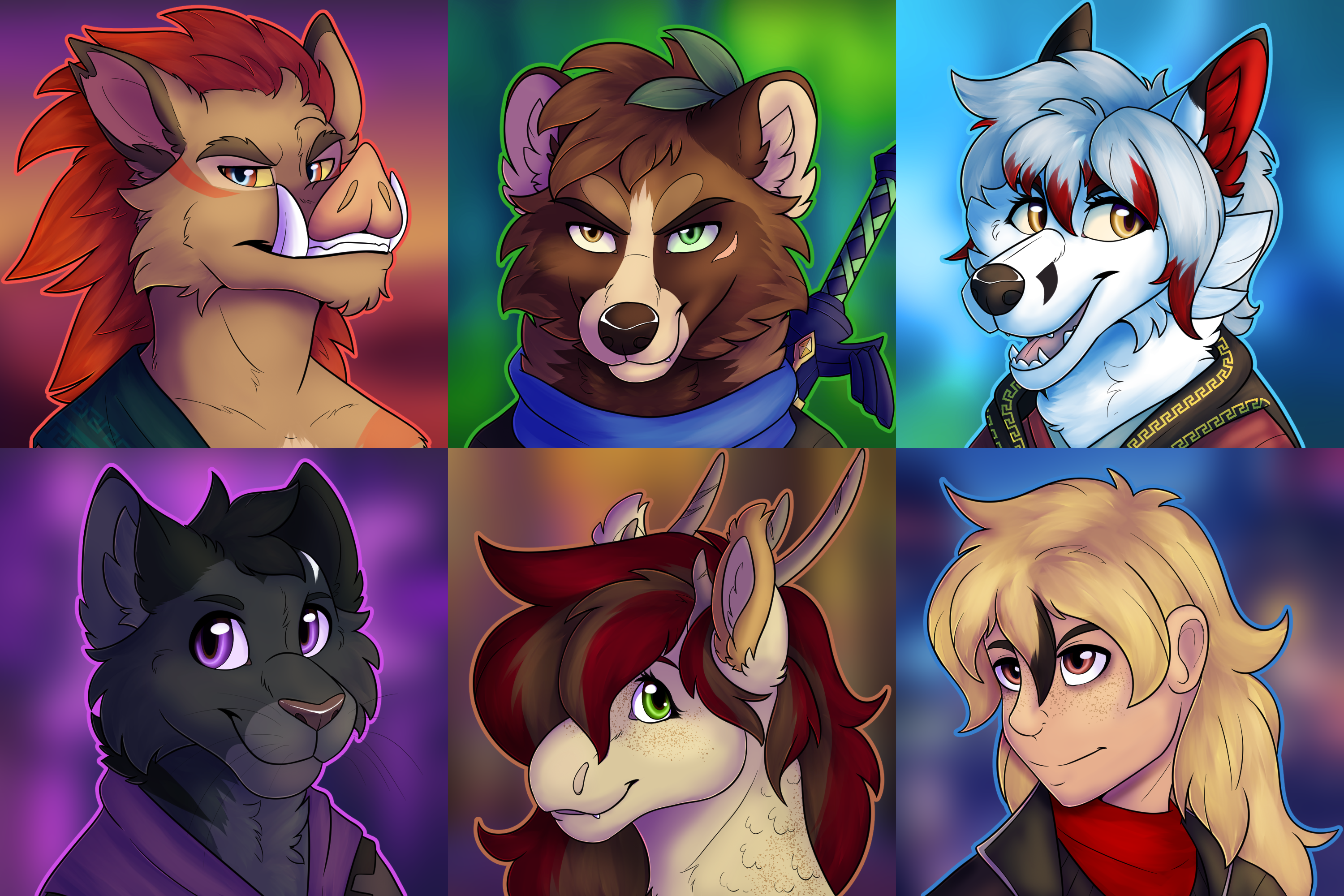 I banged these out right before ArtFight started! I wanted new icons since I added Hakkai to the trio. My partner needed a new icon because he now has a scar on his head and we agreed to add it to his ref sheet. And poor Sheyla needed an icon for her toyhouse page. And I just haven't drawn Faunasha in forever. :P