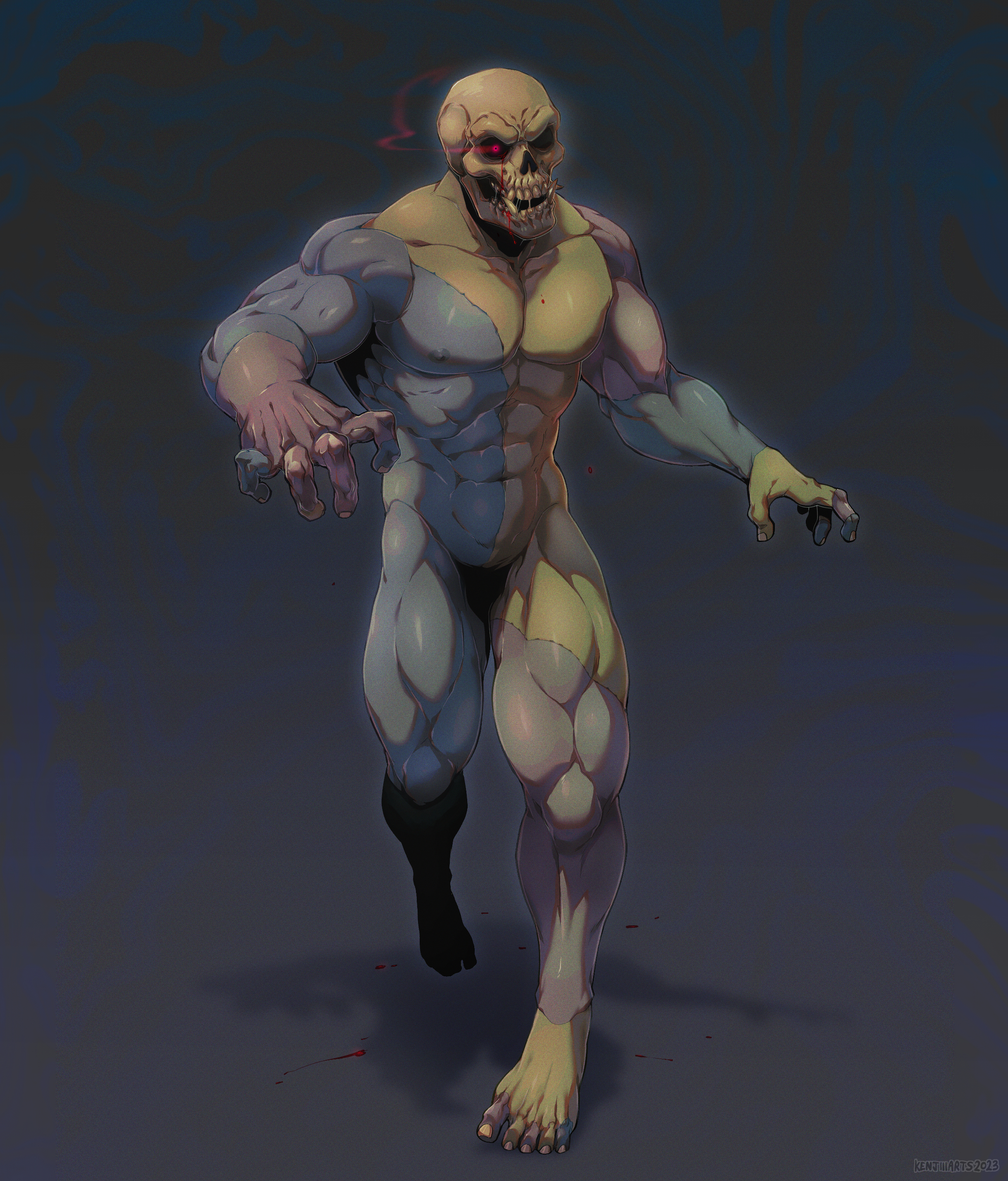 https://patreon.com/KENJIIIThe day he was first made, he was a little.. Untamed. This was due to the shock of being "brought back to life". He is made of 4 people. Each dead skin tone telling you which part shares the same original body, apart from the skull. The Skull of Frank doesn't seem normal as the canines on the top and bottom are overly grown out as if a mutation, the eyes being just voids of black with bright pink pupils. He was made by Benjamin Bennett (another OC) as an experiment of bringing back the dead. Of course it worked though having its difficulties, Frank ended up as a slave to Benjamin in his home, doing hefty tasks that Benjamin couldn't as he's slim and weaker. Frank did have to relearn how to form sentences and talk with his new head but he never forgot words in general. It only made relearning things easier. Nowadays he is more "normal" with behaviour and speech, almost acting as a butler in service to Benjamin Bennett in his home, even wear a nice vest, shirt and trousers to fit his job. -------- See the NSFW version by supporting my Patreon (£1) https://patreon.com/KENJIII0 Comments 0 Shares 13 Views