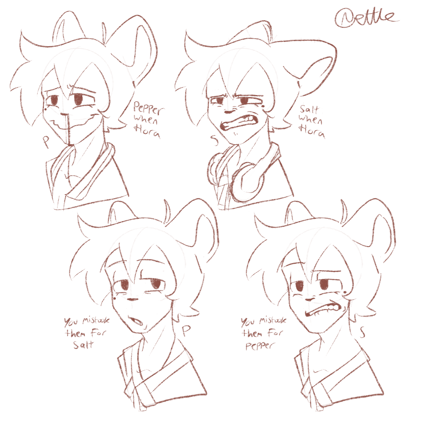 These two ocs are twins named Salt and Pepper, and are ratian ocs for the webcomic musical pipers.Had some fun playing around with really pushing expressions! These two ocs are twins named Salt and Pepper, and are ratian ocs for the webcomic musical pipers.0 Comments 0 Shares 5 Views -