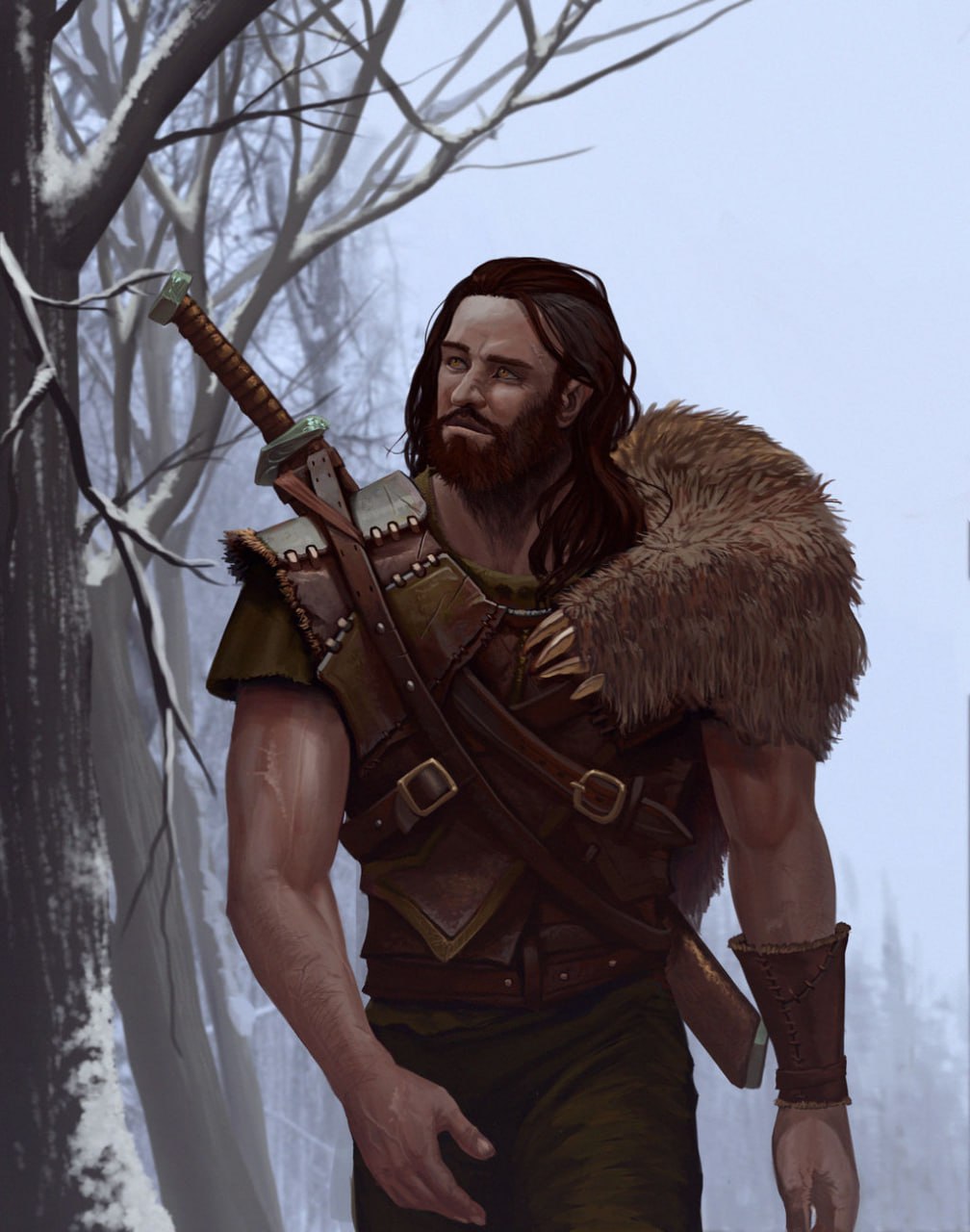 As always I'm happy to see any feedback :) It's always helps to become a better artistHey there! Here is my old but still lovely DnD commission. Grim human fighter He is basically a good guy, but he has necromancy magic which deeply disturbs him and drives him to drink constantly. He is not happy-looking (he's not happy at all) and always has a full gourd of wine. He wears light leather armor over old clothes and carries a large longsword. As always I'm happy to see any feedback :) It's always helps to become a better artist0 Comments 0 Shares 8 Views