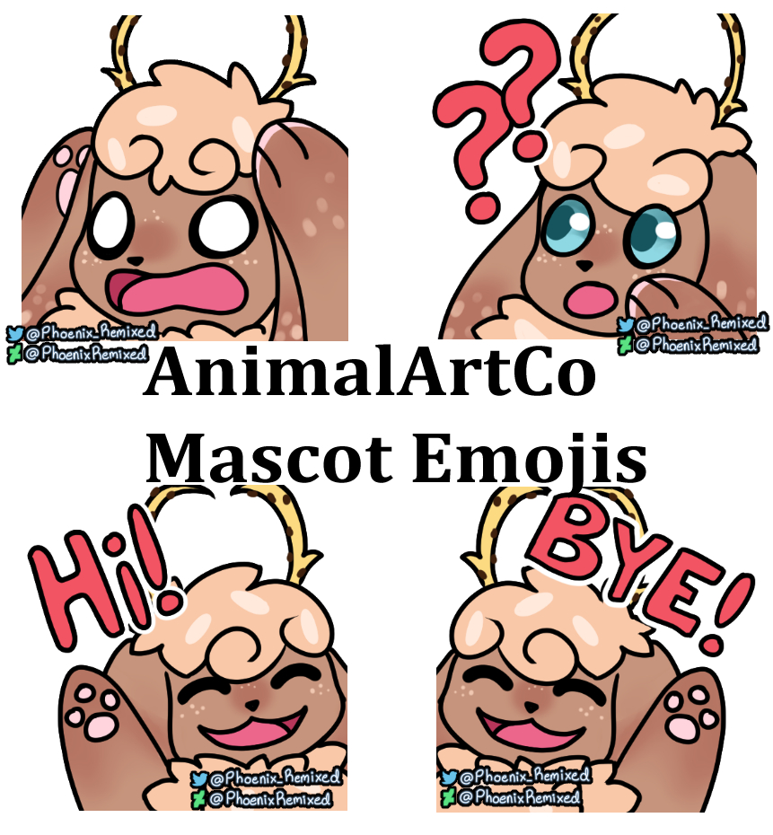 [Art Discord](https://discord.gg/9DqjJfh) ☆ [Deviantart](https://www.deviantart.com/phoenixremixed) ☆ [Other Sites](https://bio.link/phoenixremixed) ☆A few emotes I made for the AnimalArtCo discord group in September 2021! The character featured is our jackalope mascot named Truffle ☆ [Commissions](https://phoenixremixed.carrd.co/) ☆ [Art Discord](https://discord.gg/9DqjJfh) ☆ [Deviantart](https://www.deviantart.com/phoenixremixed) ☆ [Other Sites](https://bio.link/phoenixremixed) ☆0 Comments 0 Shares 27 Views