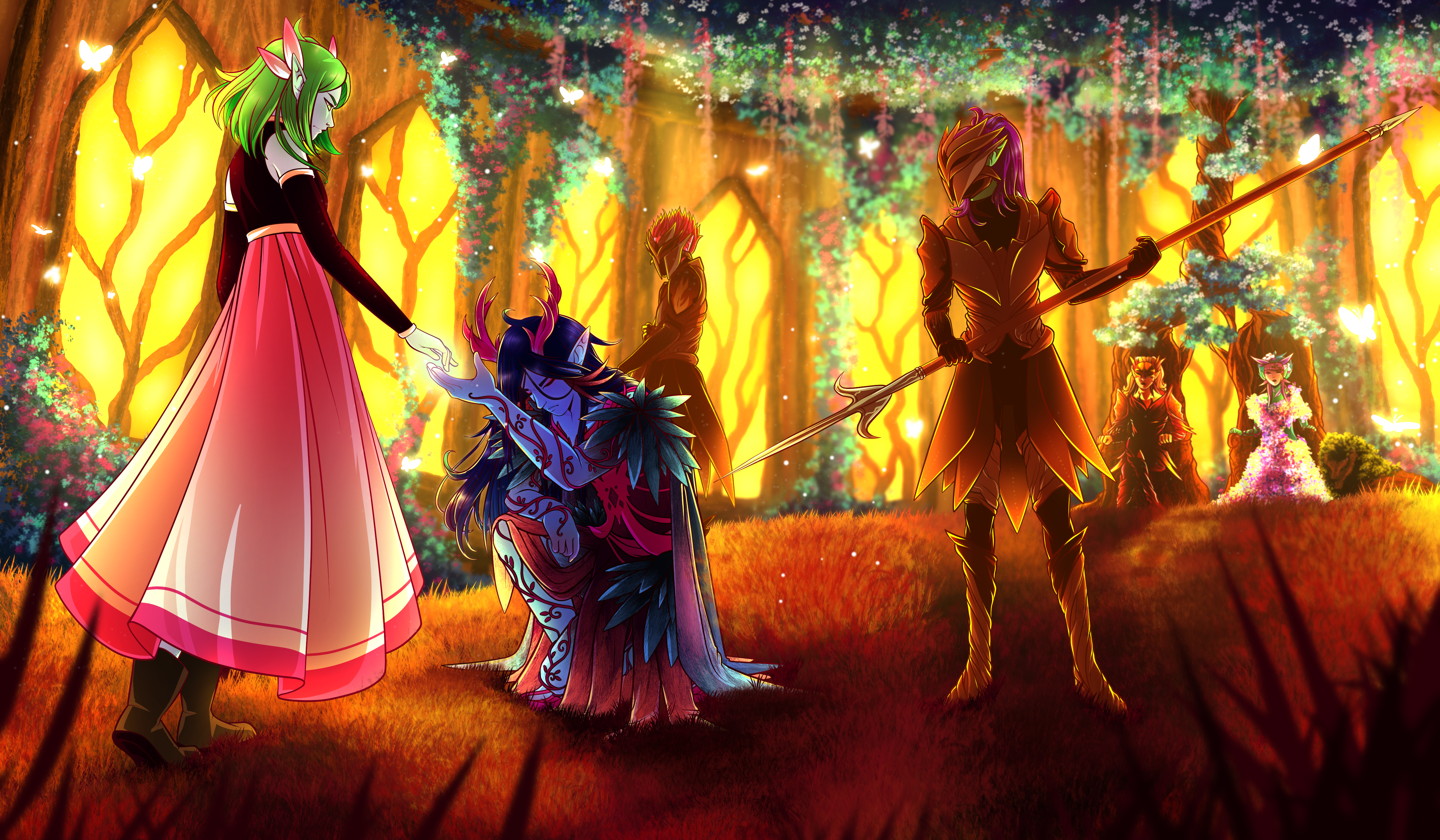 https://toyhou.se/16953321.lancelot_With this pact, Lancelot,_ _you will become my **Eidolon**_ _and I, your **Summoner**._ ------ This was the moment that Keeva and Lancelot formed their pact and he became her eidolon, permanently connecting their souls together until the day Keeva dies. Neither of them are happy about this; Keeva is hurt because she was forced to release the service of her previous eidolon, something that was emotionally painful for her. Lan is accepting of this 'punishment', but it was shameful going from being a Summer Court Noble, to being an eidolon at the service of another, and with no choice in the matter. He knows he's being made an example out of, to not be killed and reborn, but to lose everything he is. It was a lot of fun making the background for this, and figuring out the lighting was a fun challenge. I think this is one of my favorite things I've ever drawn. ------ To read more about my characters, here are some links to their TH pages! ✨ https://toyhou.se/16940643.keeva ✨ https://toyhou.se/16953321.lancelot0 Comments 0 Shares 27 Views -