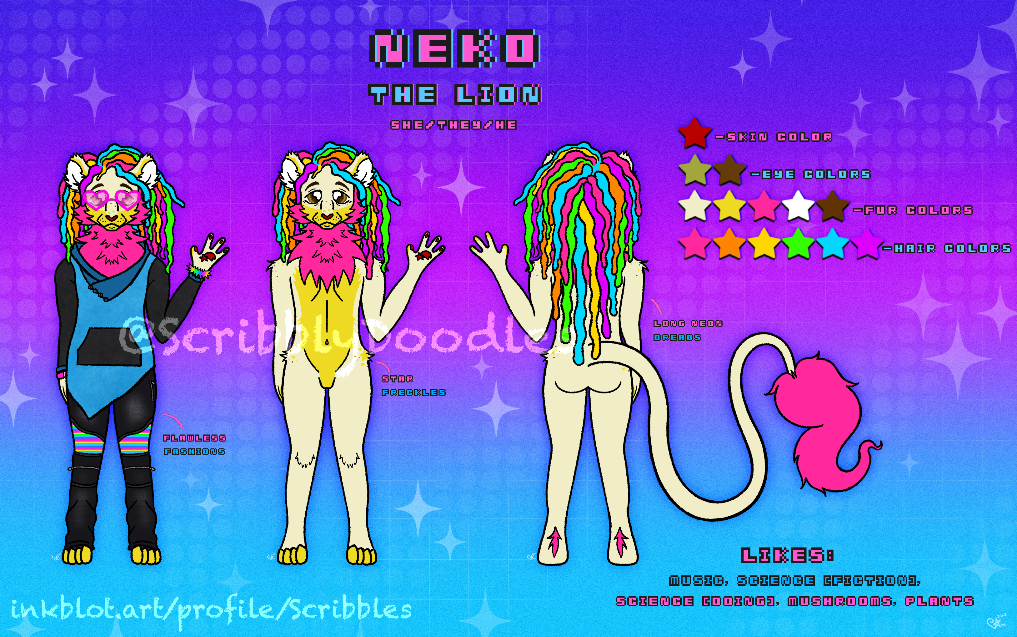 A ref sheet of my partner’s fursona!A ref sheet of my partner’s fursona! 🌈🦁💖0 Comments 0 Shares 4 Views