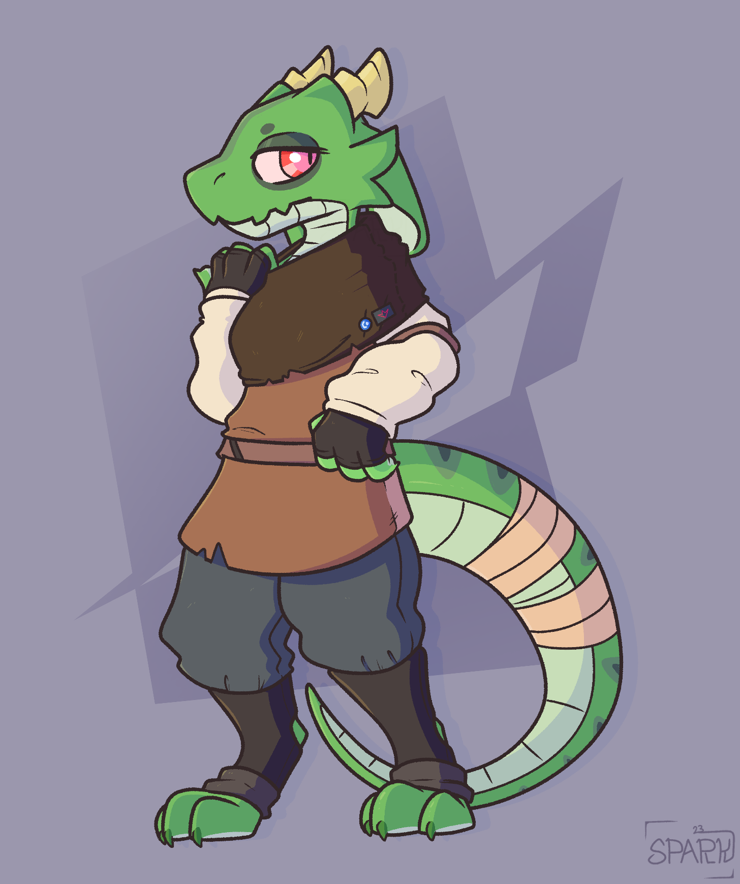 (Reupload, last version was way too big) It was inevitable I make a personal Gremlin character. With that, I thought, why not make mine a Warmaster? Nothing said they had to be in the Crimson Nine to be a Warmaster. I just assume they're leading role in what I call the "Gremlin Royal Forces" which is just the name of their army.Sparky is a leader in logistics and medicine. A talented Mender, they're damn hard to kill and pretty charitable- except to Isorians! Digital Art Fan Art Furry Art(Reupload, last version was way too big) It was inevitable I make a personal Gremlin character. With that, I thought, why not make mine a Warmaster? Nothing said they had to be in the Crimson Nine to be a Warmaster. I just assume they're leading role in what I call the "Gremlin Royal Forces" which is just the name of their army.Sparky is a leader in logistics and medicine. A talented Mender, they're damn hard to kill and pretty charitable- except to Isorians! Digital Art Fan Art Furry Art0 Comments 0 Shares 36 Views
