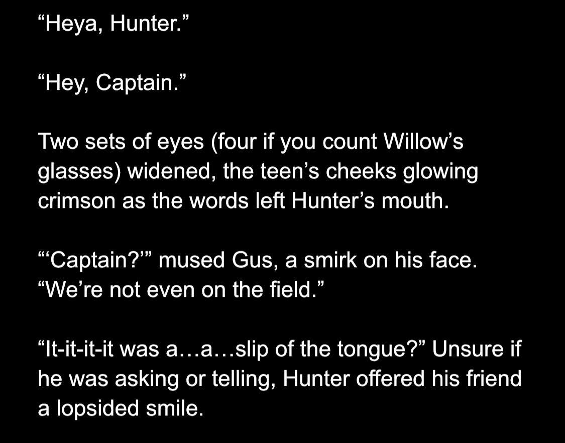 “‘Captain?’” mused Gus, a smirk on his face. “We’re not even on the field.”