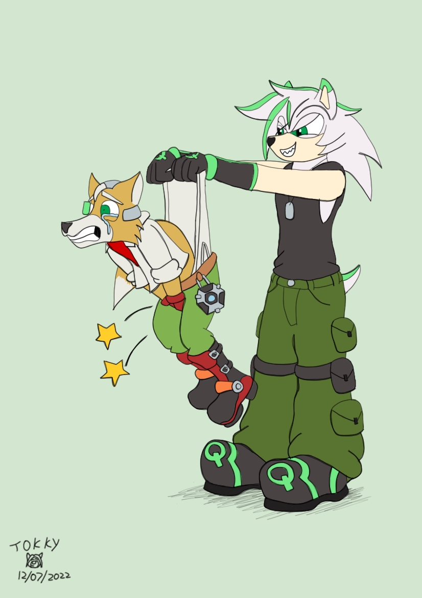 Flat color picture for Aiden (no page for them to link to), with them reminding a certain fox of the pecking order around these parts.