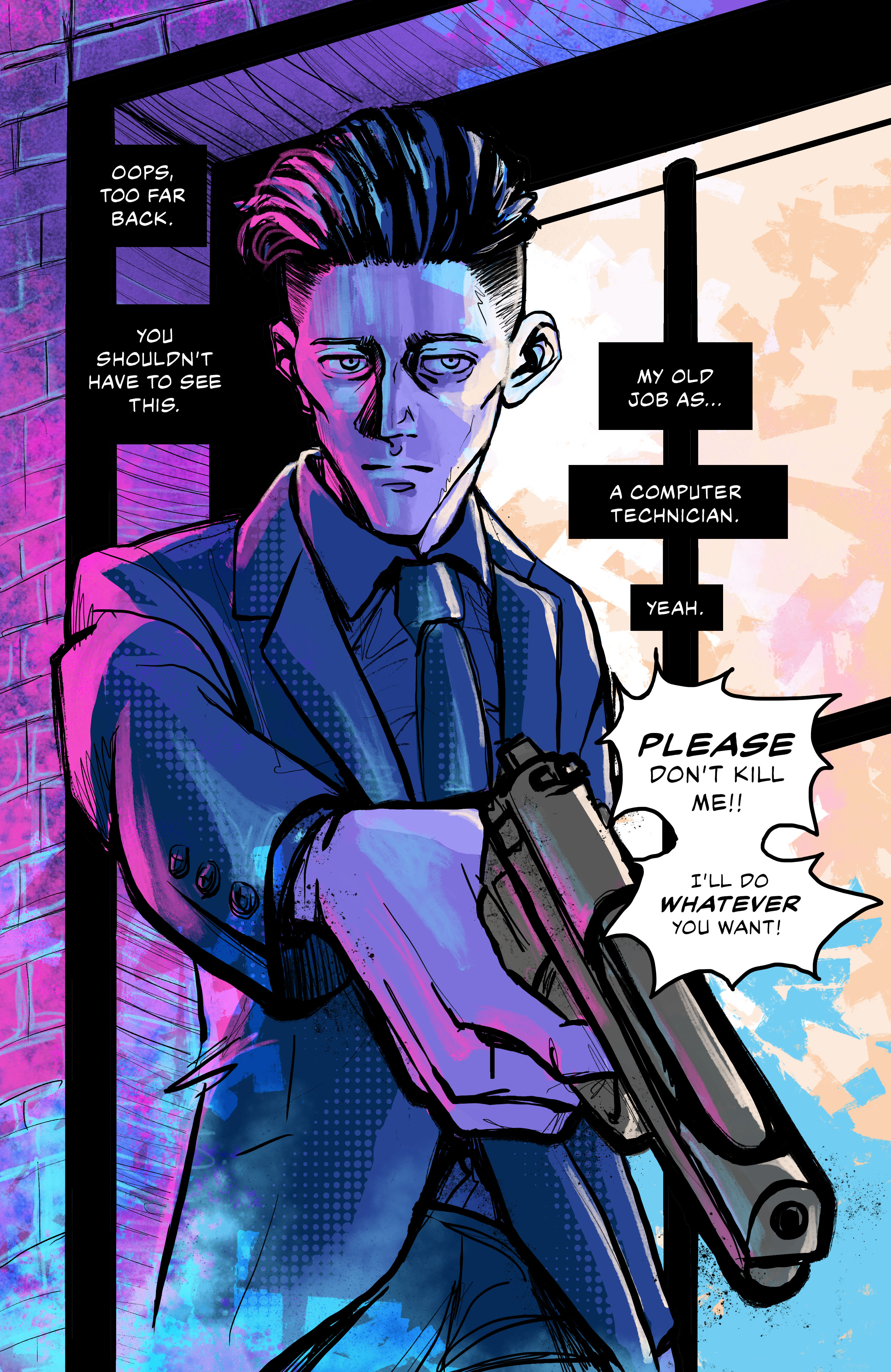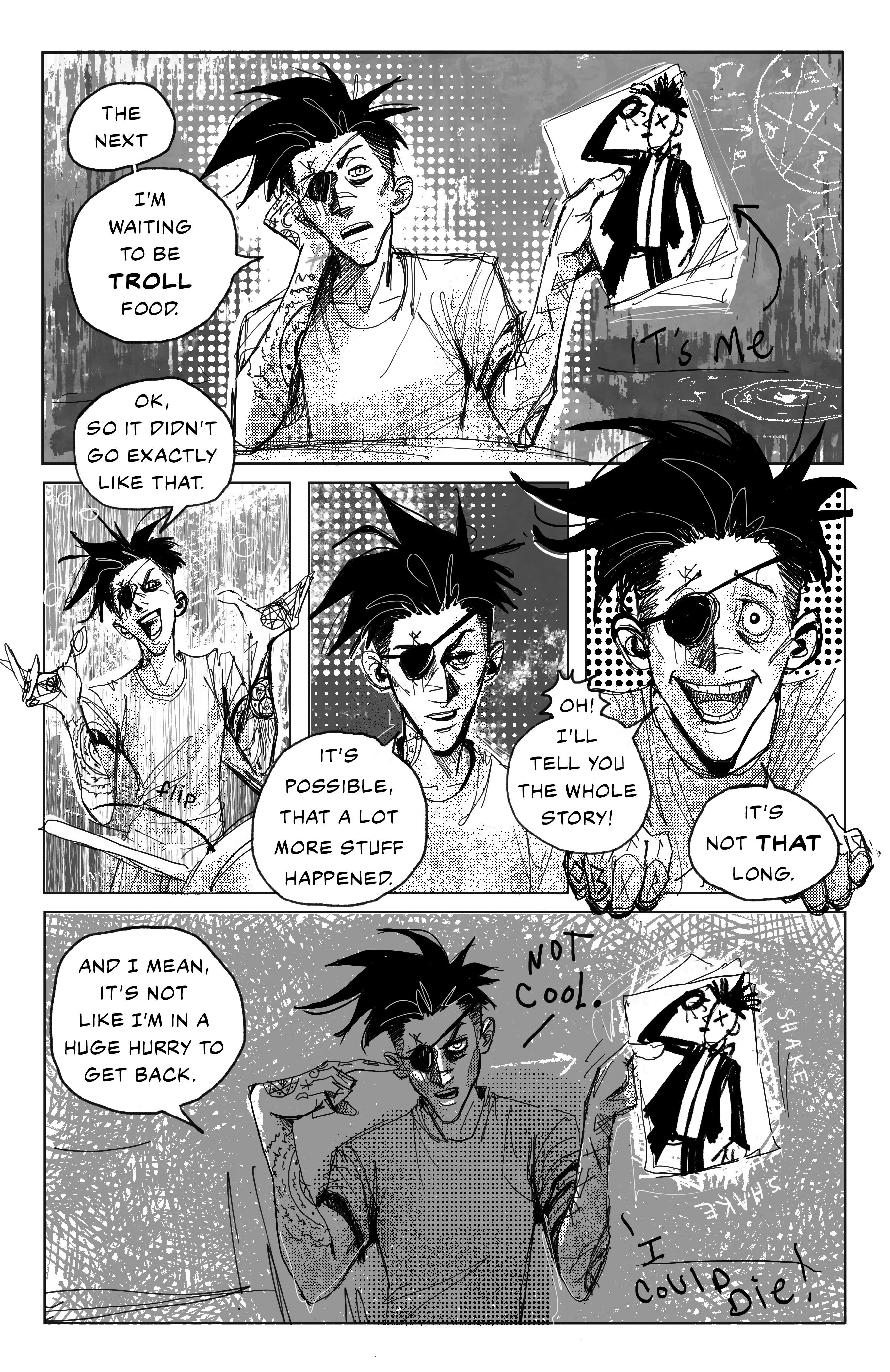 This comic was started more or less on a whim in 2021 but I'd been messing with the characters and story for years before that. I had a few false starts (1-5 pages) and still liked most of them...this page was in one of them from 2019 or 20. in the begining, anything in color was reused from an older version.Print format comic, read L-R This comic was started more or less on a whim in 2021 but I'd been messing with the characters and story for years before that. I had a few false starts (1-5 pages) and still liked most of them...this page was in one of them from 2019 or 20. in the begining, anything in color was reused from an older version.0 Comments 0 Shares 8 Views
