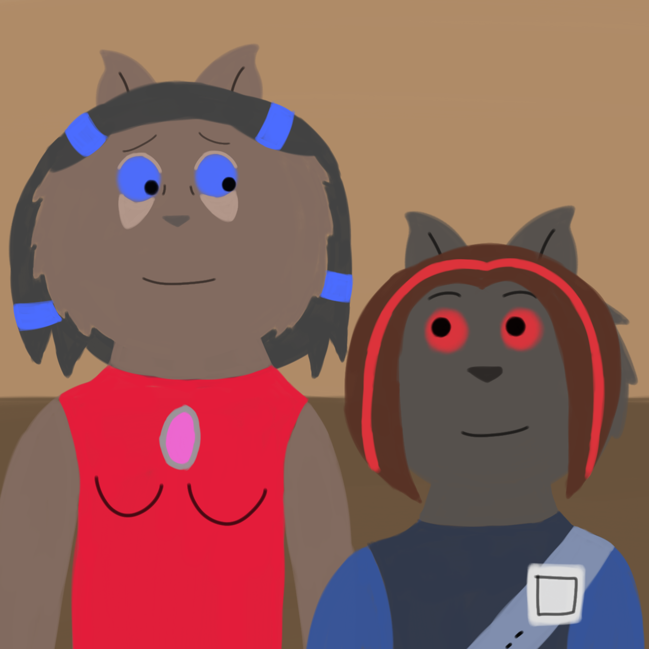 Image description: Drawing of Minerva looking at Alice with a smile and Alice looks tiredly at Minerva and holds lesbian flag in her mouth. The background is in lesbian flag's colorsImage description: Drawing of Minerva looking at Alice with a smile and Alice looks tiredly at Minerva and holds lesbian flag in her mouth. The background is in lesbian flag's colors0 Comments 0 Shares 28 Views