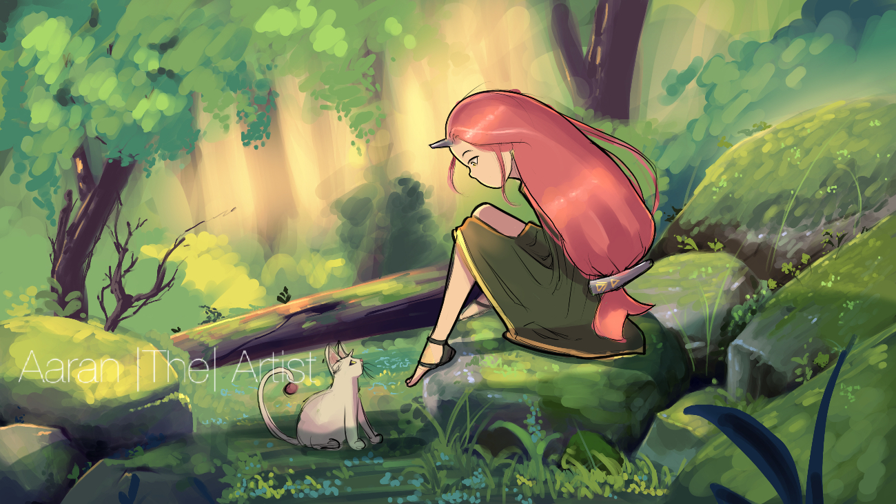 I also have a video showing the process behind this piece, and going over 3 tips you can use to improve your background paintings: https://youtu.be/N5Xx1g3IMtU_“The elders say each of us has our own familiar. It’s a kind of special animal spirit that lives inside you. It’s all mixed up with your soul like plants are all mixed with each other in the forest, so sometimes you can’t tell which plants are which. Summoning your familiar is the first thing you learn to do. You can do it before you talk, or crawl, even before you can eat red berries. Because of the special connection, the two of you are.. kinda the same thing. Mine’s this silly lookin cat.”_ - Rin Vaalie * More concept art of Rin wandering around the Poma forest. Now she’s got her familiar with her because it’s cute :). * **If you’ve never seen me before and wandering what the hell this is, hi! I’m Aaran the Artist and this is one of many pieces in my ever expanding fantasy world. The world I am building is called Omnes Magna, and here you’ll see concept art including the environments, character designs, pixel art, as well as the occasional lore dump. Hope you enjoy it!** I also have a video showing the process behind this piece, and going over 3 tips you can use to improve your background paintings: https://youtu.be/N5Xx1g3IMtU0 Comments 0 Shares 5 ViewsPlease log in to like, share and comment! -