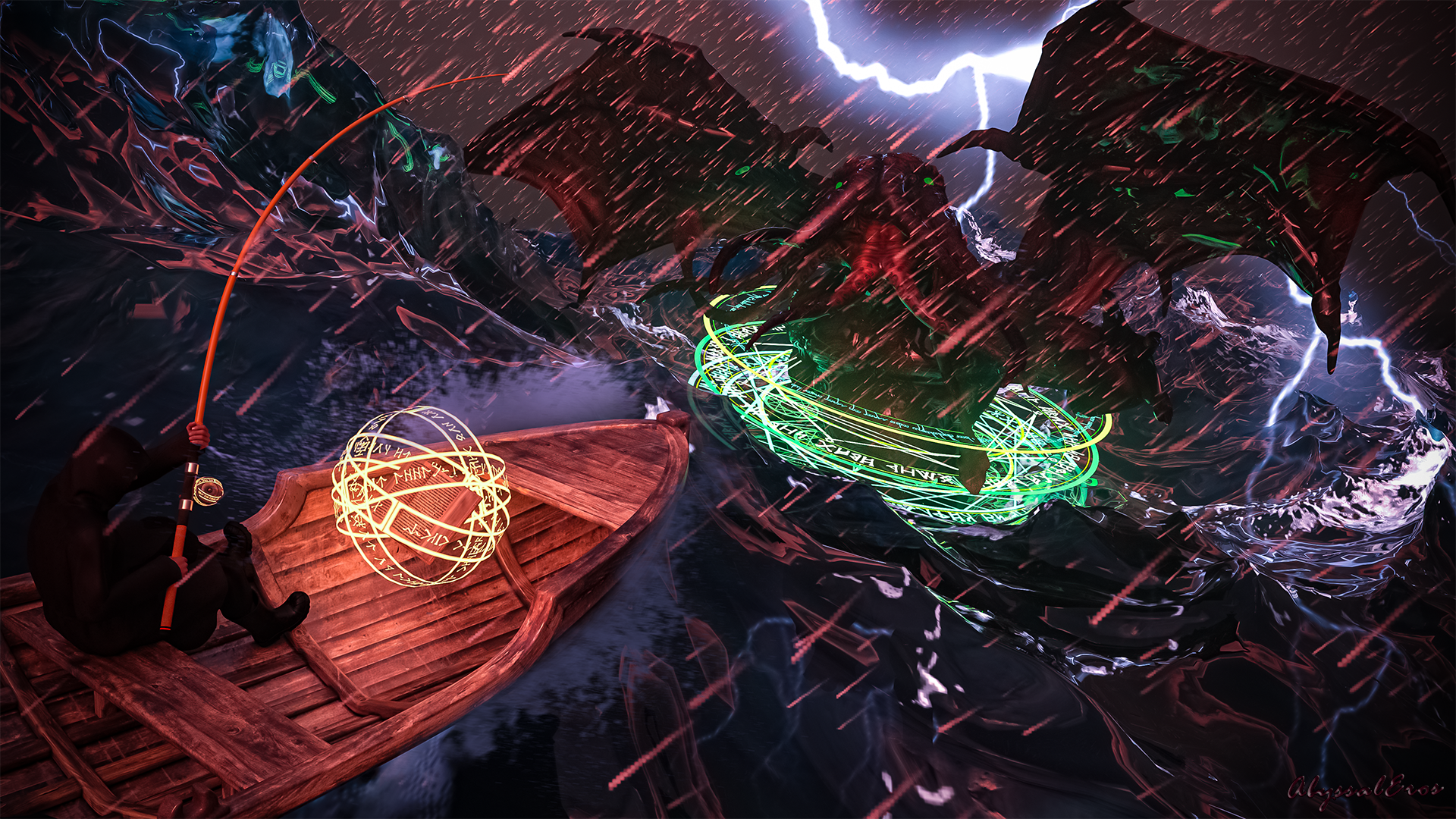 Rendered in DAZ Studio 4.14 in Iray with a bit of postwork in Photoshop (Camera Raw adjustments and spray) for Renderosity's My Greatest Catch Contest 2021.Believe me or not, it’s up to you. What I tell you now is either the truth or a lie. It only depends on your stand in reality. In days past, when I sailed the stormy seas of the eternal dreams, I have thrown out my fishing rod to sate my unquenching hunger for the arcane mysteries. With the power of my thoughts come to life by ink and paper, I finally found the undying sleeper under the waves and lured him to rise from the bottomless depth. In a battle of wits and wills, I braved him and bound him to my behests to tell me of secrets not meant for the mortals. That I can stand here and tell you of this tale is proof of its truth or untruth. ----------------------------------------- Rendered in DAZ Studio 4.14 in Iray with a bit of postwork in Photoshop (Camera Raw adjustments and spray) for Renderosity's My Greatest Catch Contest 2021.0 Comments 0 Shares 64 Views