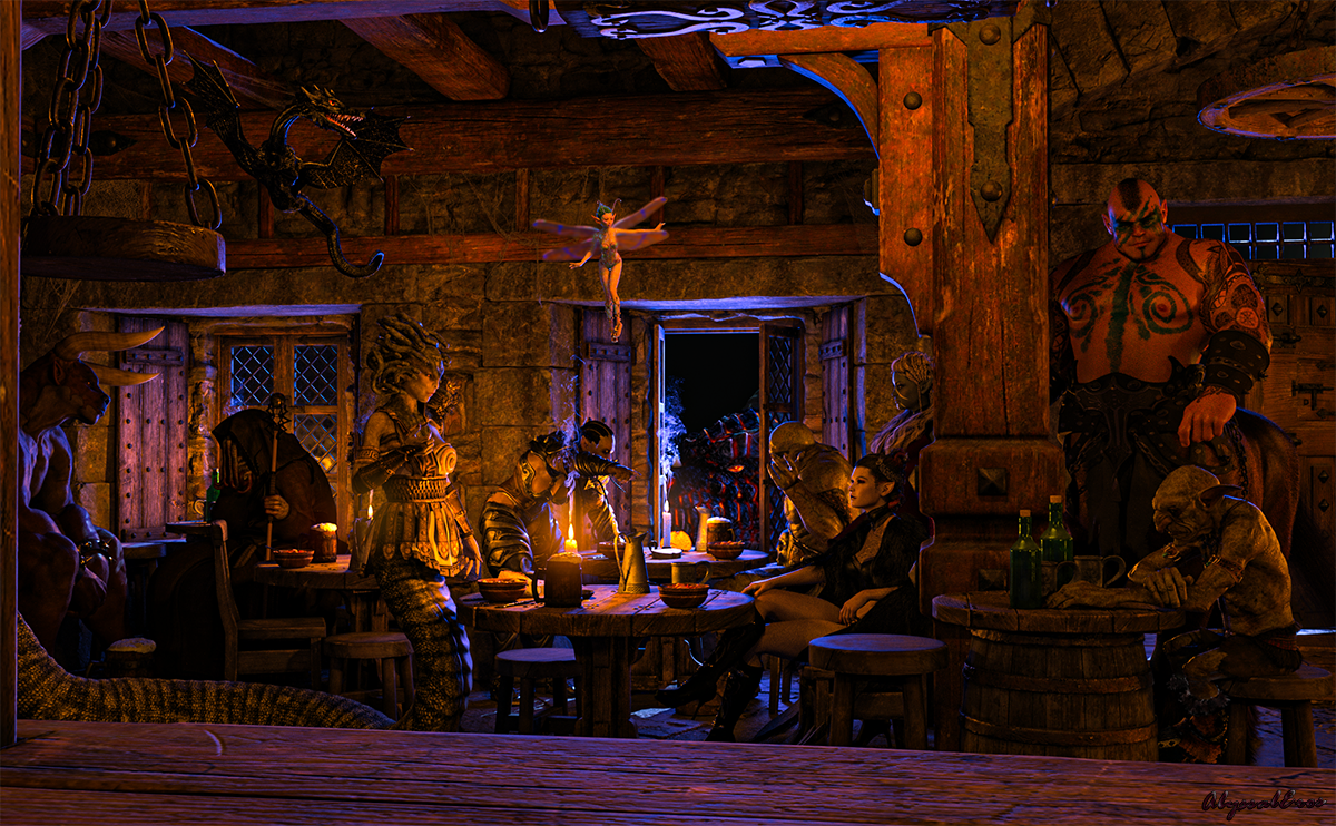 There are 13 creatures in that image, but you need to zoom into the stews to find the fly.When the sun has set, and the so-called decent folk is already fast asleep, the candles are lit in the Monsters' Rest at the end of the known worlds. Here then, all those creatures of fantasy gather to have a chat and enjoy some drinks. And to mourn the loss of dear companions, fallen through the hands of good-for-nothing adventurers in their greedy quest for gold and glory. ------ Rendered in one pass with DAZ Studio 4.14 in Iray with a bit of postwork in Photoshop for Renderosity's Animals & Creatures Contest. The image made third place. There are 13 creatures in that image, but you need to zoom into the stews to find the fly.0 Comments 0 Shares 65 Views -