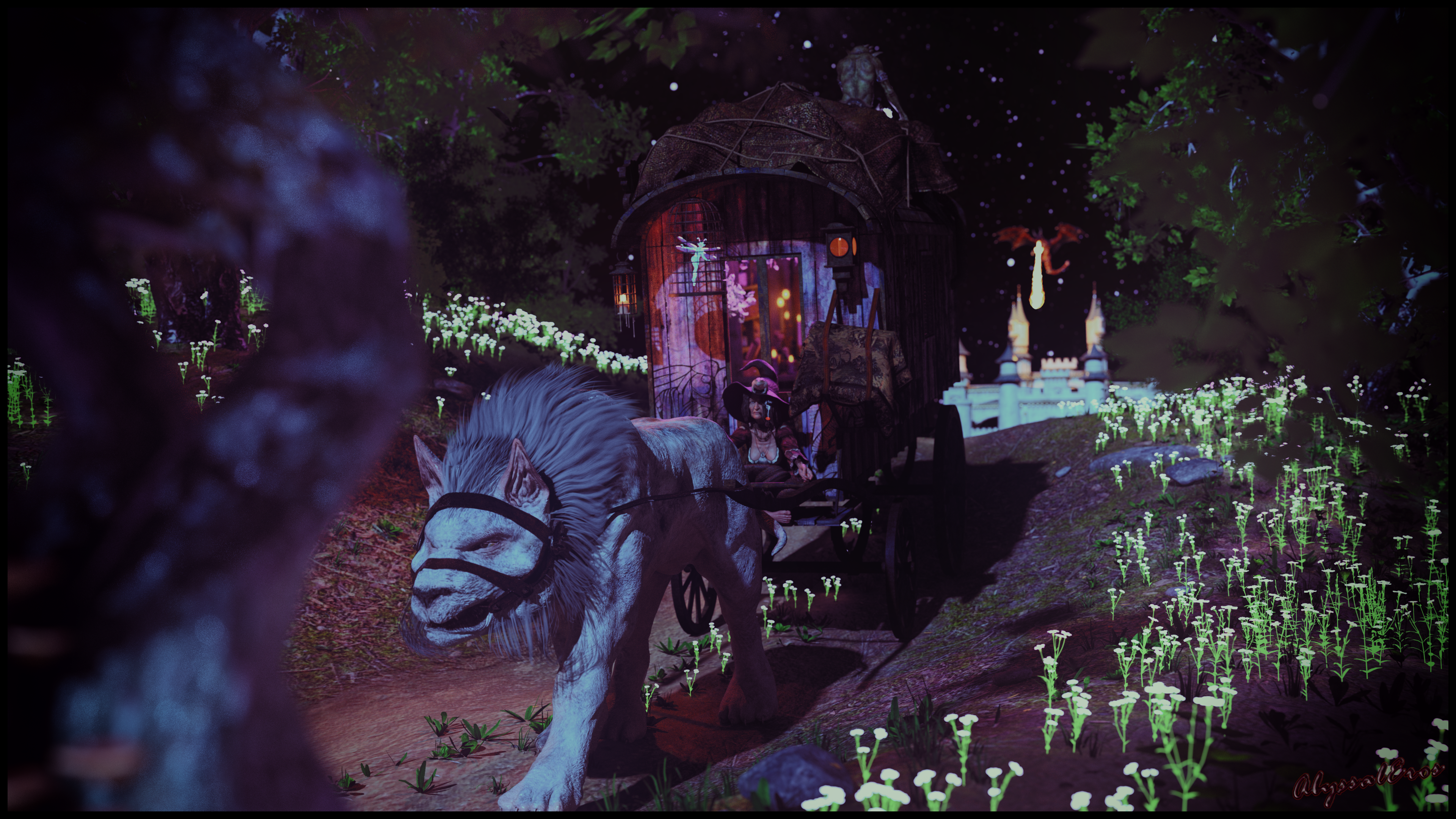While the cooks scattered around the kitchen to prepare one more mighty feast for the king, as stupid as gluttonous, and his entourage, she immediately hurried home and let her trusted goblin servant pack the traveling wagon. Meanwhile, she lured the nasty little fairy into a secure transport cage, so it would not escape on the road to wreak havoc, and prepared her loyal animal companion with spells and magic for the trip ahead to be able to pull them and their belongings.