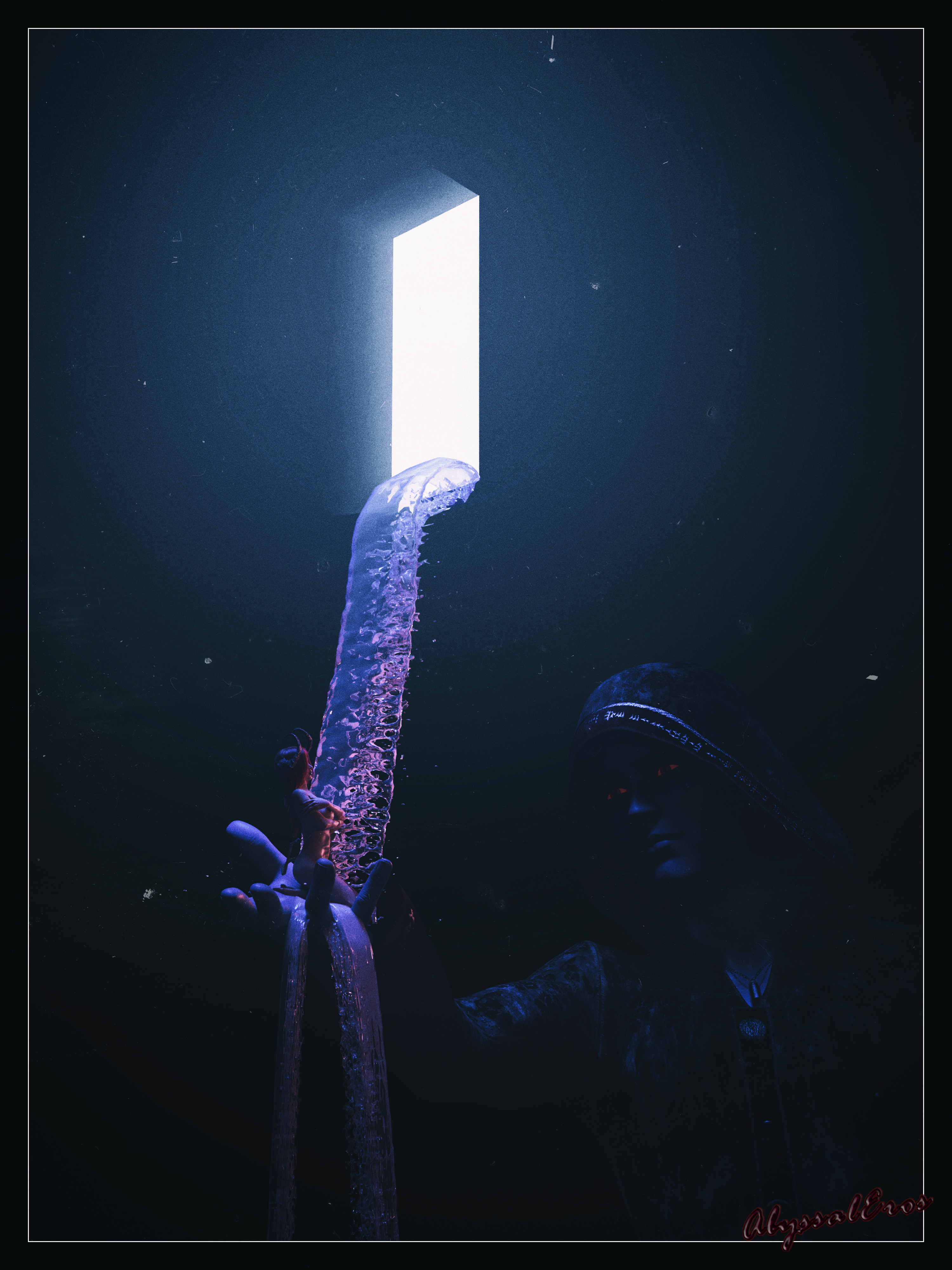 _"In the darkness of my soul is a secret door that I found while wandering in lonely dreams; once it was unlocked, the light of hope and the waters of creation poured out; with their magic, I create the illusions of better worlds."