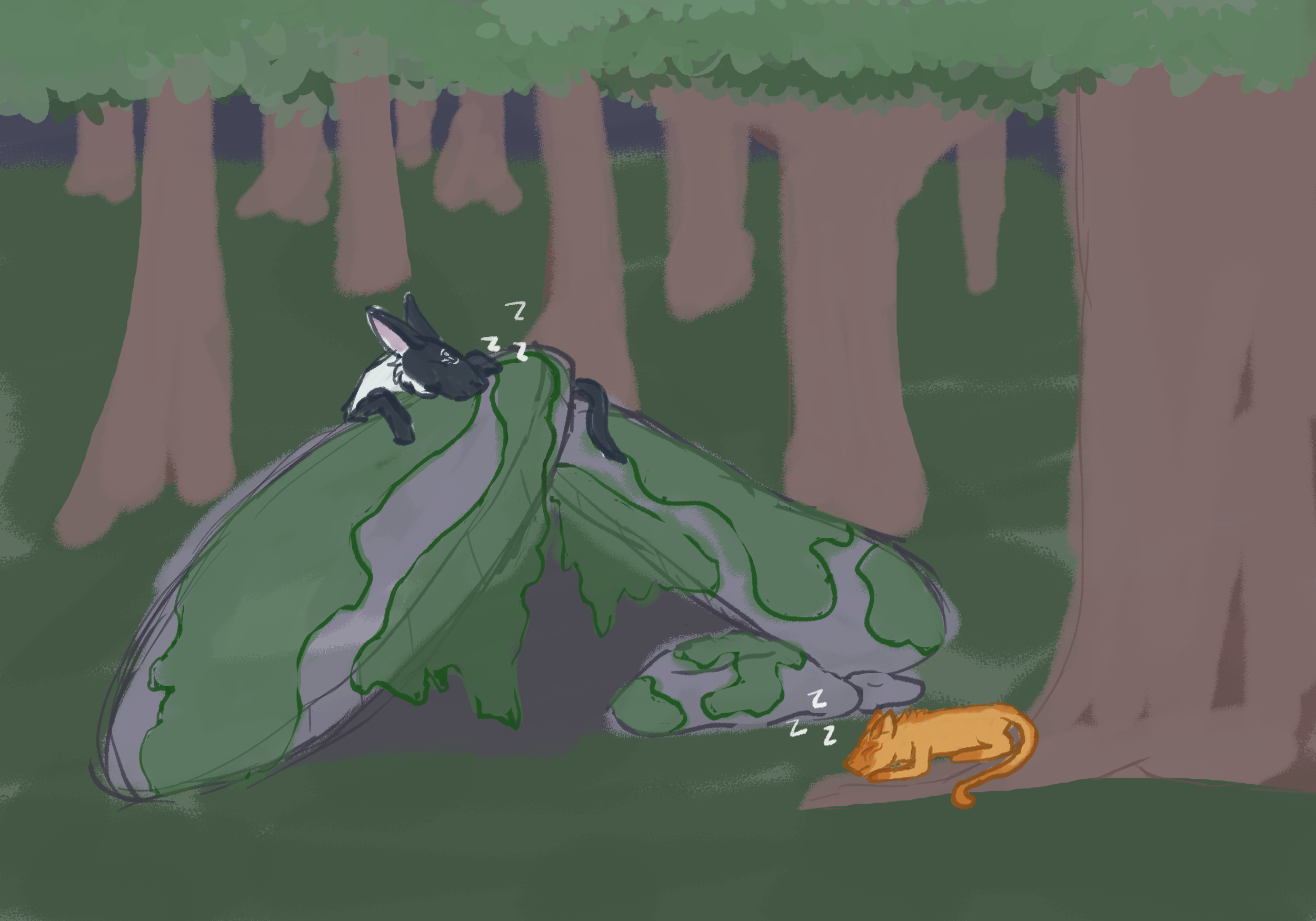 Just a small, poorly done, sketch of a small clan den that leads down into a larger cavern. ScarletStar and his friend SunSong nap quietly outside. Maybe as their clan grows more cats will join the nap!Just a small, poorly done, sketch of a small clan den that leads down into a larger cavern. ScarletStar and his friend SunSong nap quietly outside. Maybe as their clan grows more cats will join the nap!0 Comments 0 Shares 3 ViewsPlease log in to like, share and comment!
