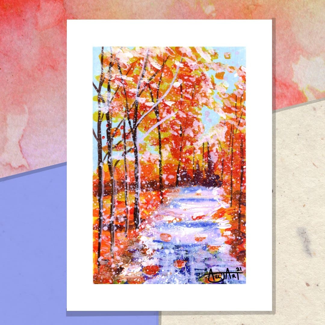This painting was inspired by the beginning of winter when it's still autumn but it's starting to get colder and there are little flurries of snow, not enough to land! I love the colours of autumn. You can get prints of this and other works on my etsy shop www.alljart.comThis painting was inspired by the beginning of winter when it's still autumn but it's starting to get colder and there are little flurries of snow, not enough to land! I love the colours of autumn. You can get prints of this and other works on my etsy shop www.alljart.com0 Comments 0 Shares 7 Views