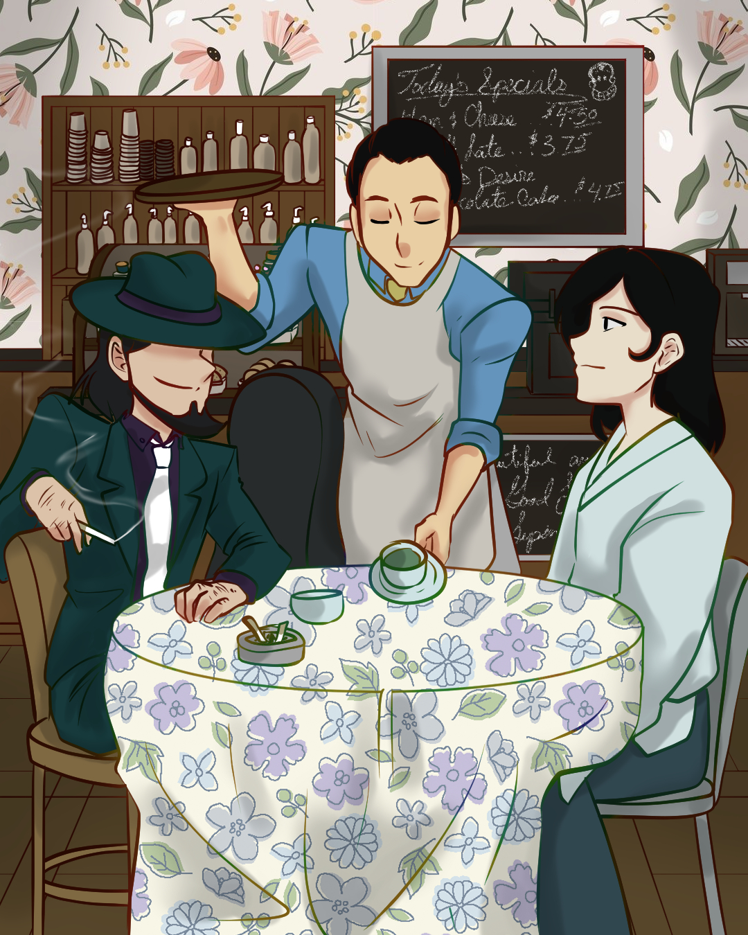 Lupin Week 2024, day 4. I chose a coffee shop AU, because there is always a coffee shop AU. Jigen is a jazz musician and Goemon is a martial arts teacher.