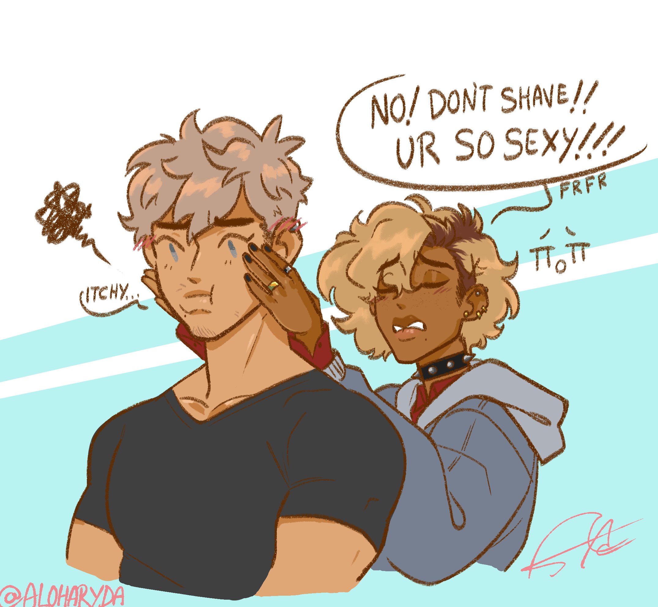 Tati she/herJoey can grow a little bit of facial hair- which makes her look very cute (and very attractive to Tati, who loves scruffy people) but he finds it itchy and likes to be smooth! Tati complains a little bit when Joey shaves. Joey she/he Tati she/her0 Comments 0 Shares 5 Views -