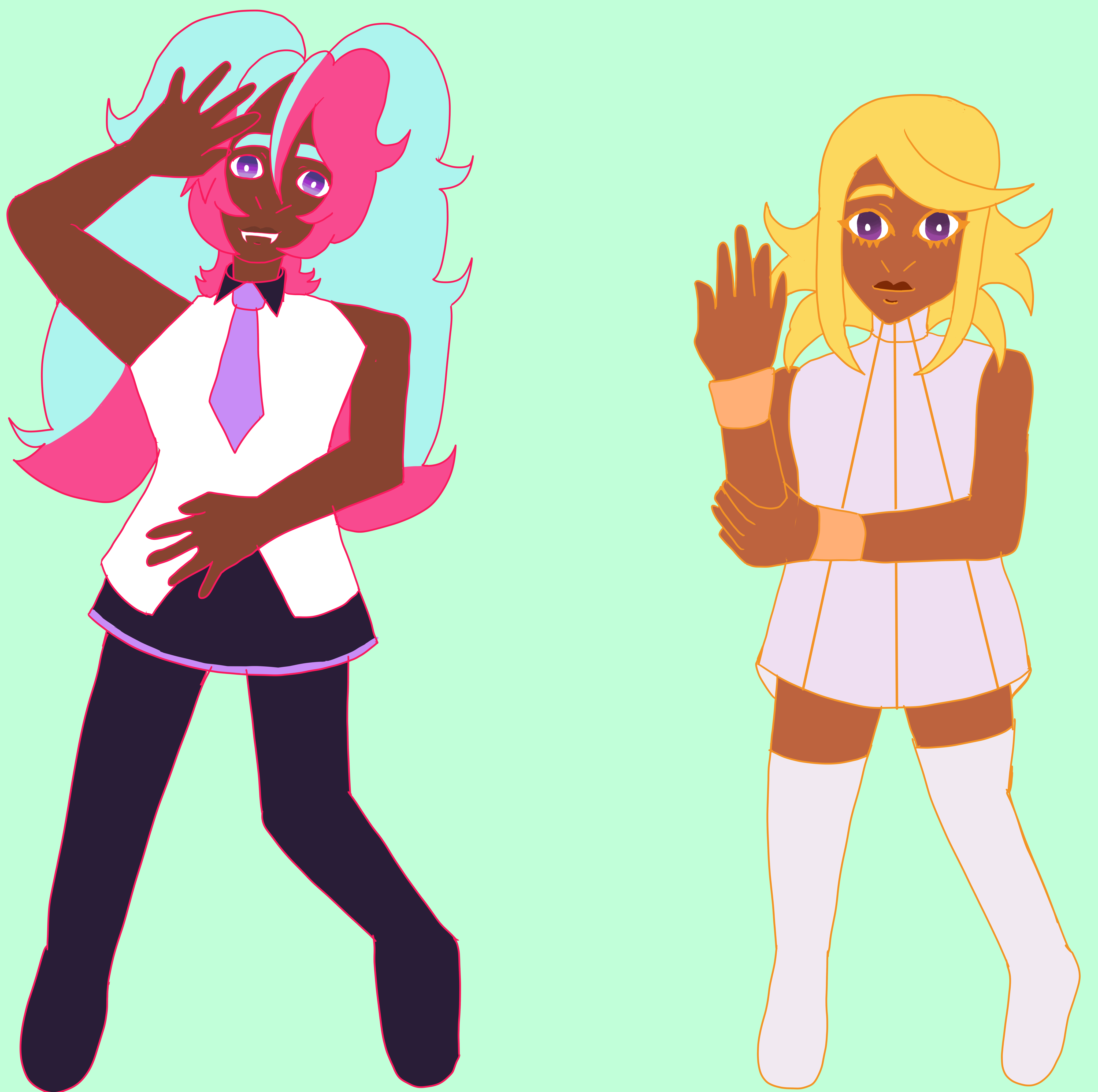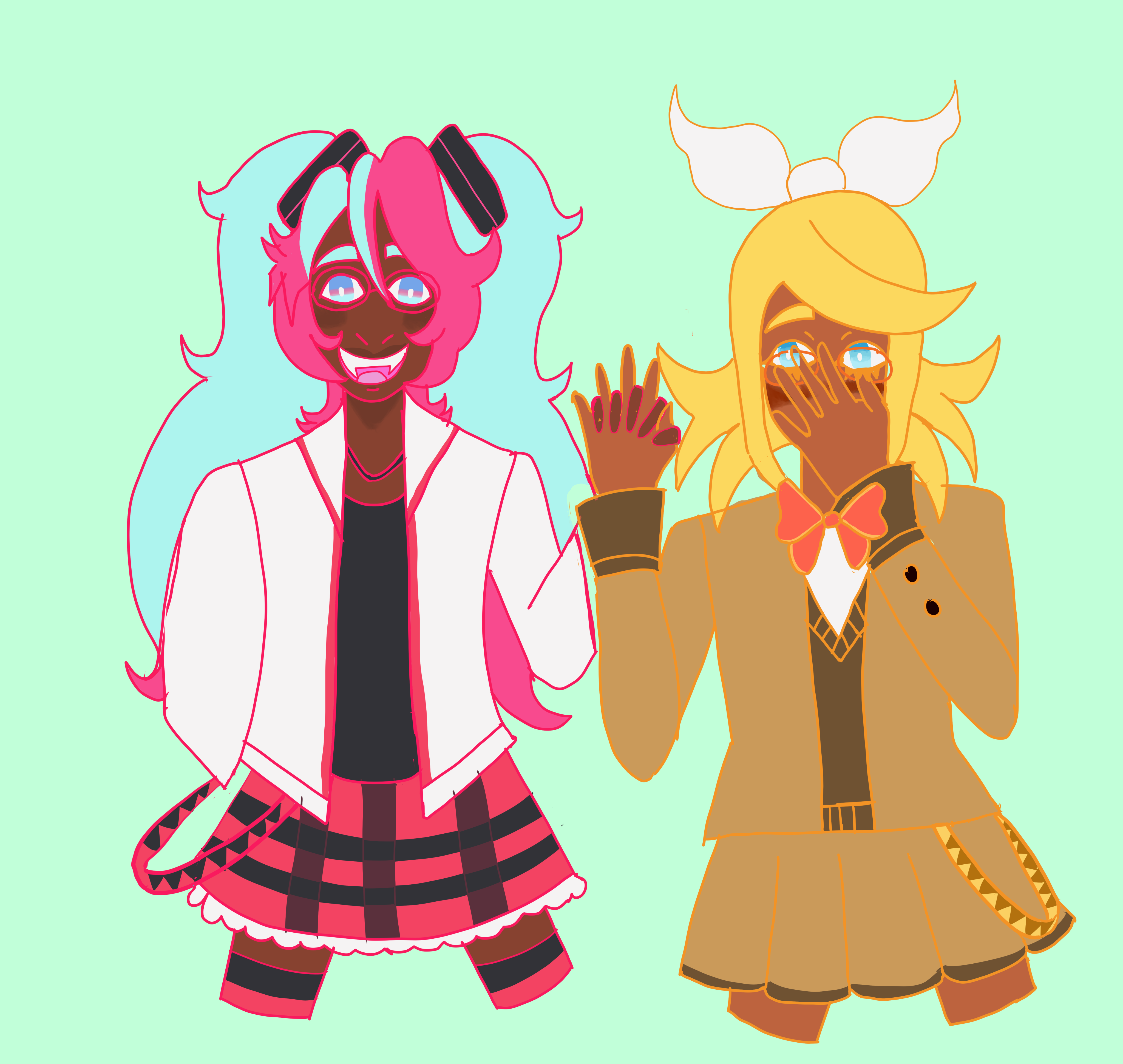 For this weeks drawtober I'm combining both blacktober and rinku week starting off with day one P.J Diva Modules I chose Rin's school outfit module and Miku's Natural module.