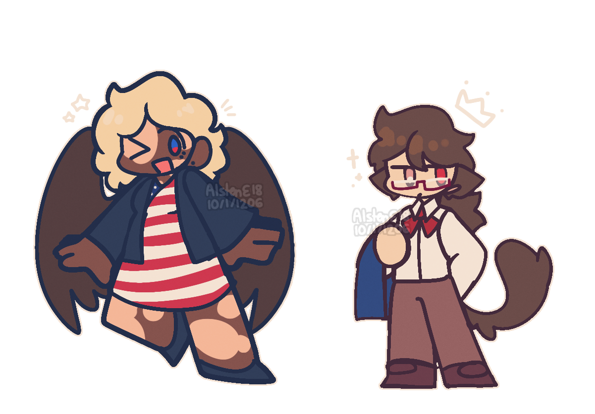 Anyways these are Lizbeth and Harry! Basically Lizbeth (she/her) is often rowdy and loud, but is a caring individual, and Harry (he/they) is just a snobby sophisticated guy.