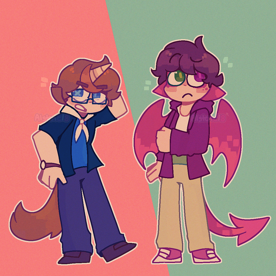 _(Posted on 02 February 1207)_Hey guys! Uploaded again after so long lol- Main reason is that I'm not active too much on my socials because of school and I post more comfortably on my computer... Although because of school I'm not on my computer often lol- I'm halting the initial "upload queue" I had at one point, considering it was kind of hindering with my want to upload here. So I made a promise to myself, if I wanna do a queue, I'll just do it one upload per day. That way maybe I might not be classified as a post bot if I'm just posting one minute apart lol- That aside, this drawing is actually a redraw on an old art of mine back in 2019, so these characters shown had a LOT in terms of design changes lol- So to summarize, the guy on the left is Ivyblade (he/they) and the one on the right is Rosebloom (he/him). They're plant elemental guys but Ivy's more on the general leafy plant stuff while Rose is more on flowers. They kinda have some struggles with each other that's what's going on lol- _(Posted on 02 February 1207)_0 Comments 0 Shares 27 Views -