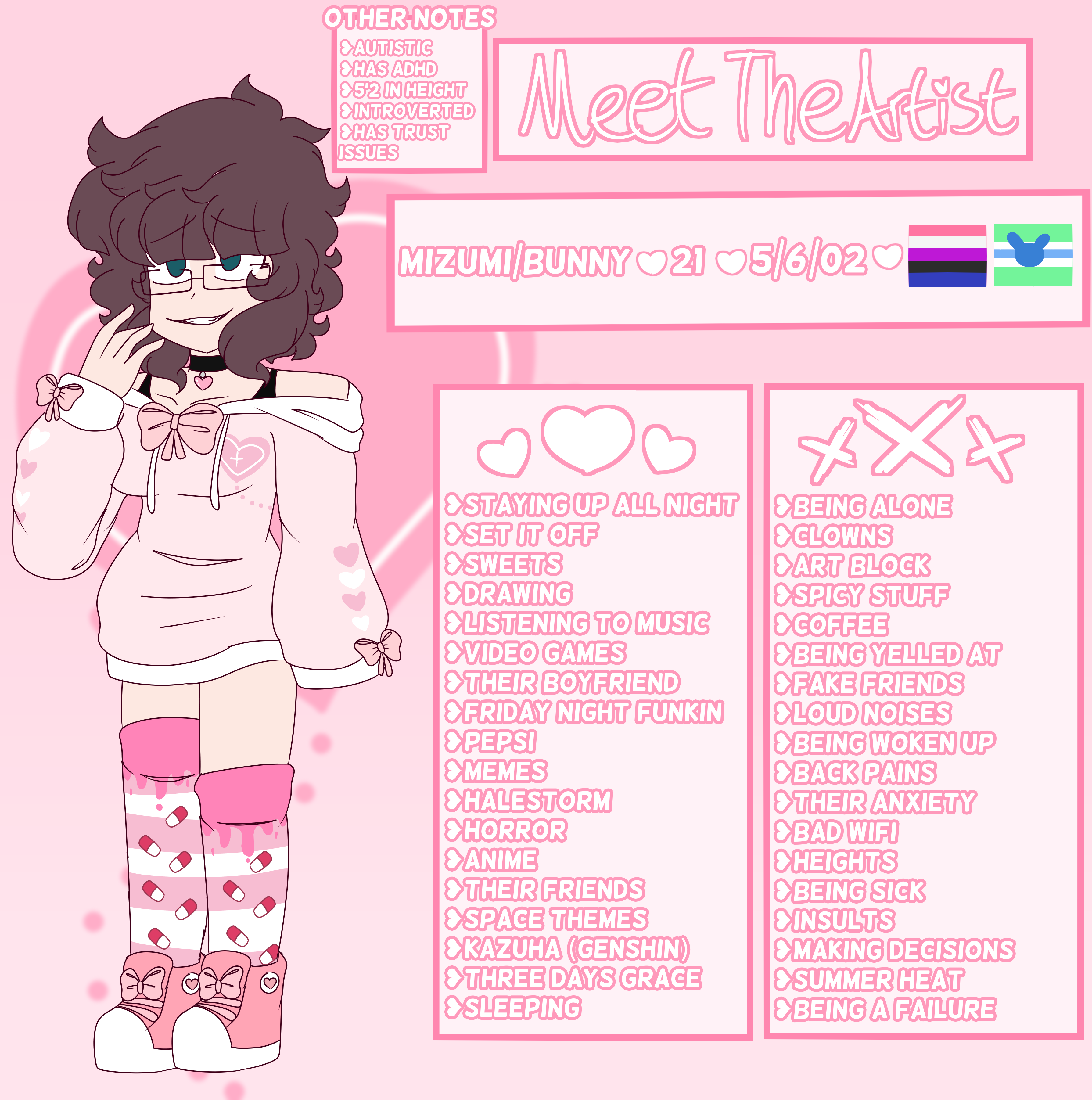 💌Hello!!! Welcome to the official AmayaMizumi Inkblot account!! For those new to me, I'm Mizumi,Bunny, or Seth, and I'm a 21 year old artist that drinks Pepsi and listens to Set it off 24/7! I'm also the creator of AmayaMizumi, a Genderfluid Visual novel Neko a.i. vtuber character! I hope you enjoy my work!0 Comments 0 Shares 24 Views