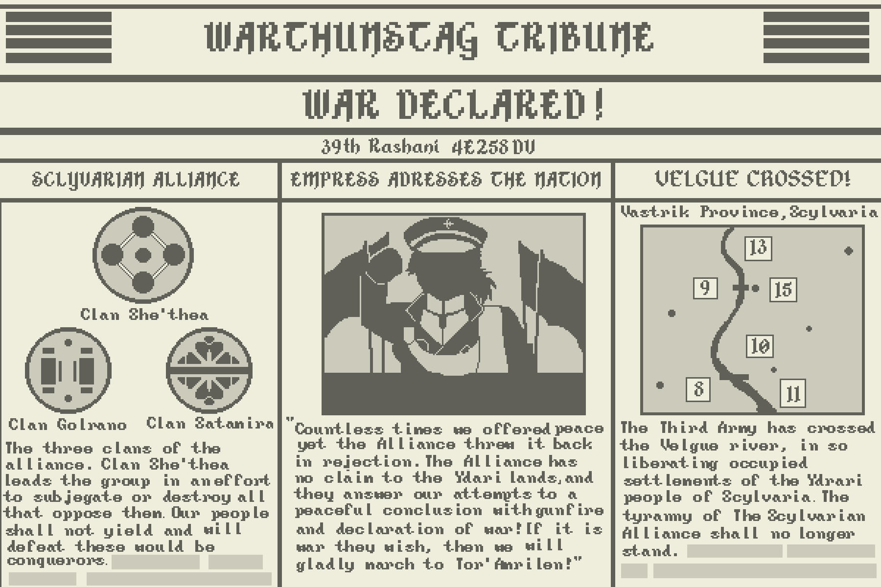 Elfriede Zelpharia was the youngest of the main line of succession, however, as her siblings died over the Empire's gradual fall, she found herself thrust into the position of leadership after the death of her last remaining sister in the initial Morathian Civil War. She saw the corruption and greed of her family as the main cause of the Empire's troubles and swore to uplift its people from the tragedies imposed on them by the ruling class. She would lead many reforms, fight a second short civil war against the bourgeoise of the empire, and open the empire's borders to become a home for all.