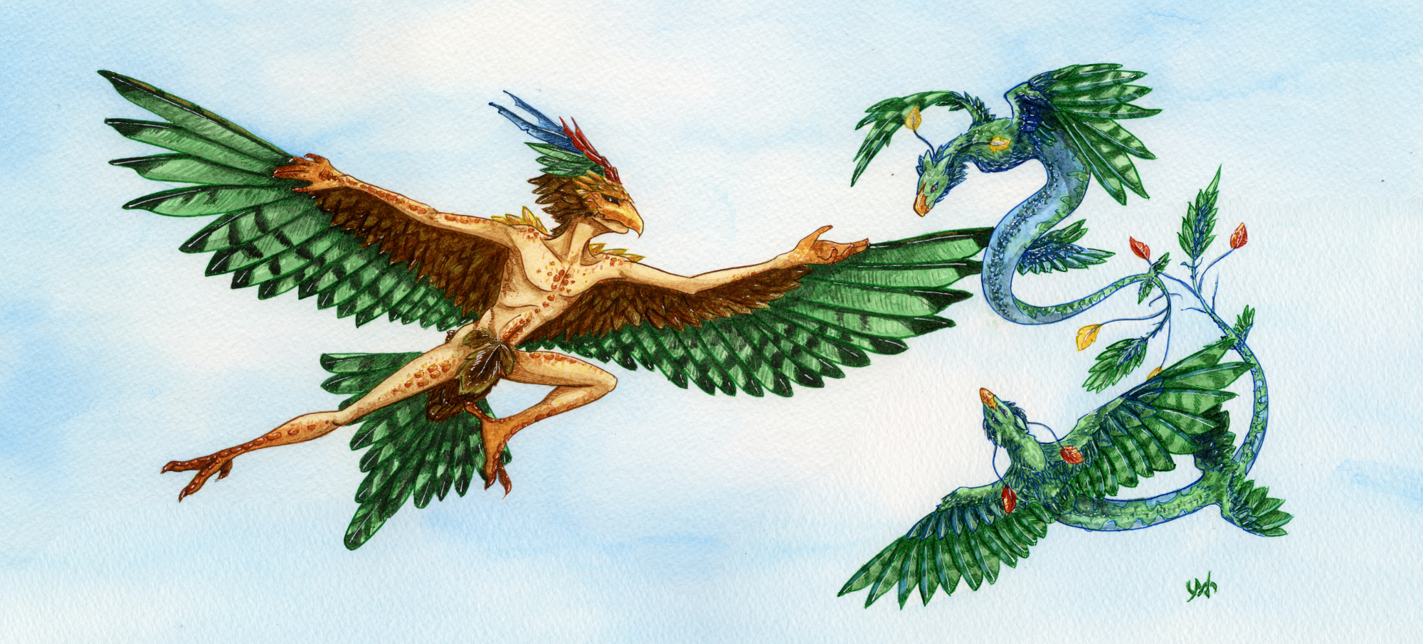The Bird Folk are one of the three non-human, non-fey inhabitants of the Isle (for more, see_ A Vision of Air_ by Nicole Silver).Coloured ink and warercolour on watercolour paper. (Original available framed or unframed.) The Bird Folk are one of the three non-human, non-fey inhabitants of the Isle (for more, see_ A Vision of Air_ by Nicole Silver).0 Comments 0 Shares 4 Views -