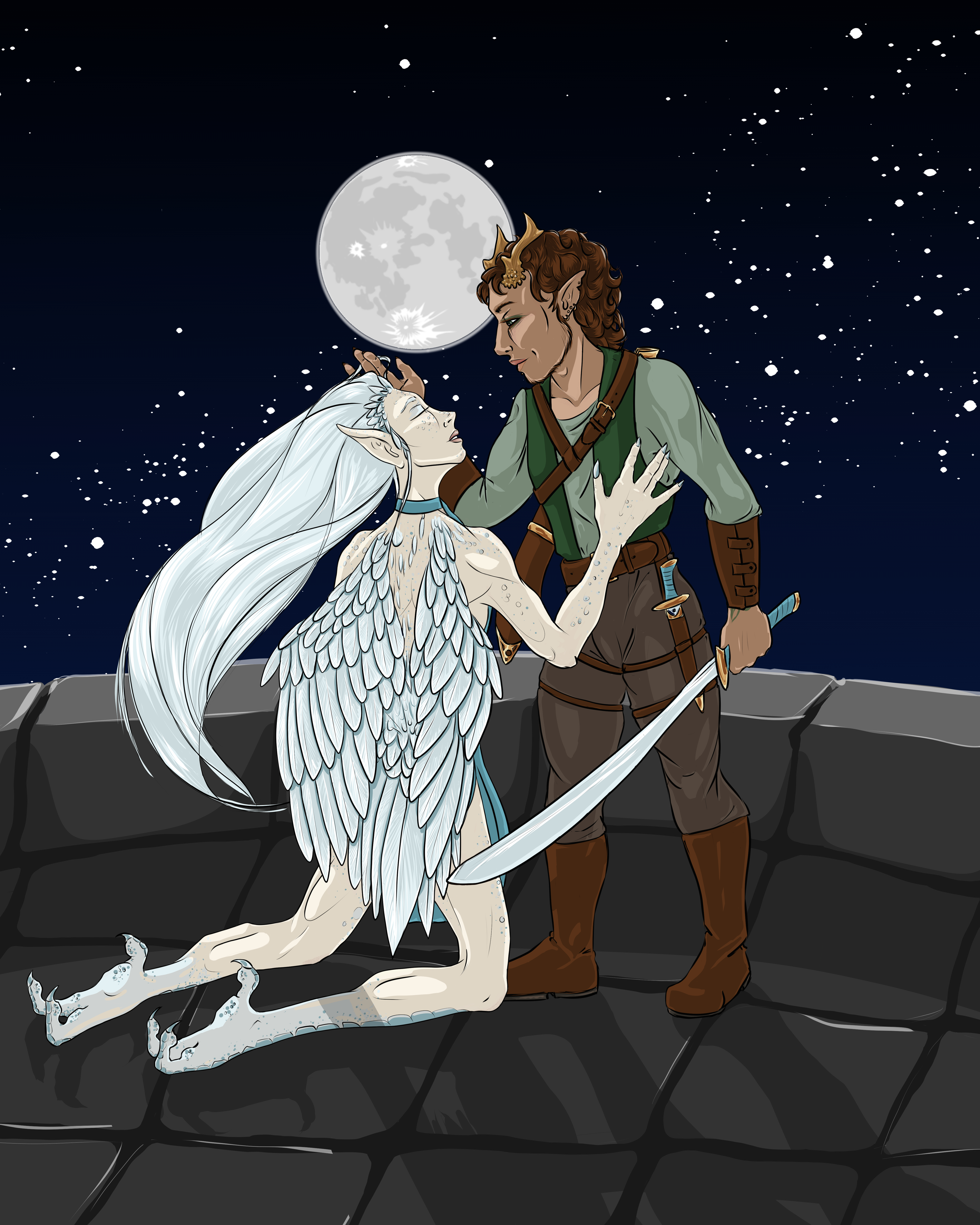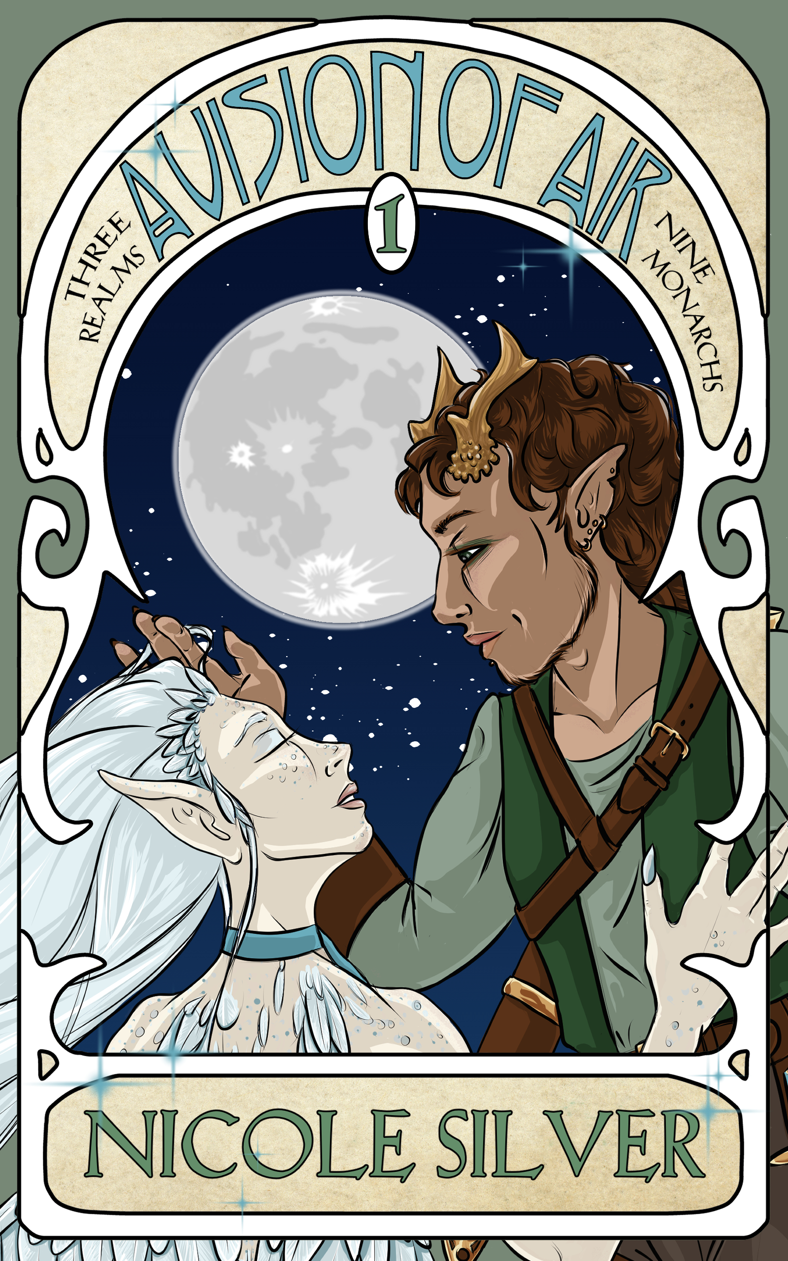 Cover illustration for _A Vision of Air_ by Nicole Silver. (Also exists in a NSFW version, which may be posted eventually.) These are the two main characters, Branfionn (bird folk) and Kiernan (half-fey, half-human), having a moment on top of a tower.Digital (Clip Studio Paint). Cover illustration for _A Vision of Air_ by Nicole Silver. (Also exists in a NSFW version, which may be posted eventually.) These are the two main characters, Branfionn (bird folk) and Kiernan (half-fey, half-human), having a moment on top of a tower.0 Comments 0 Shares 6 Views -