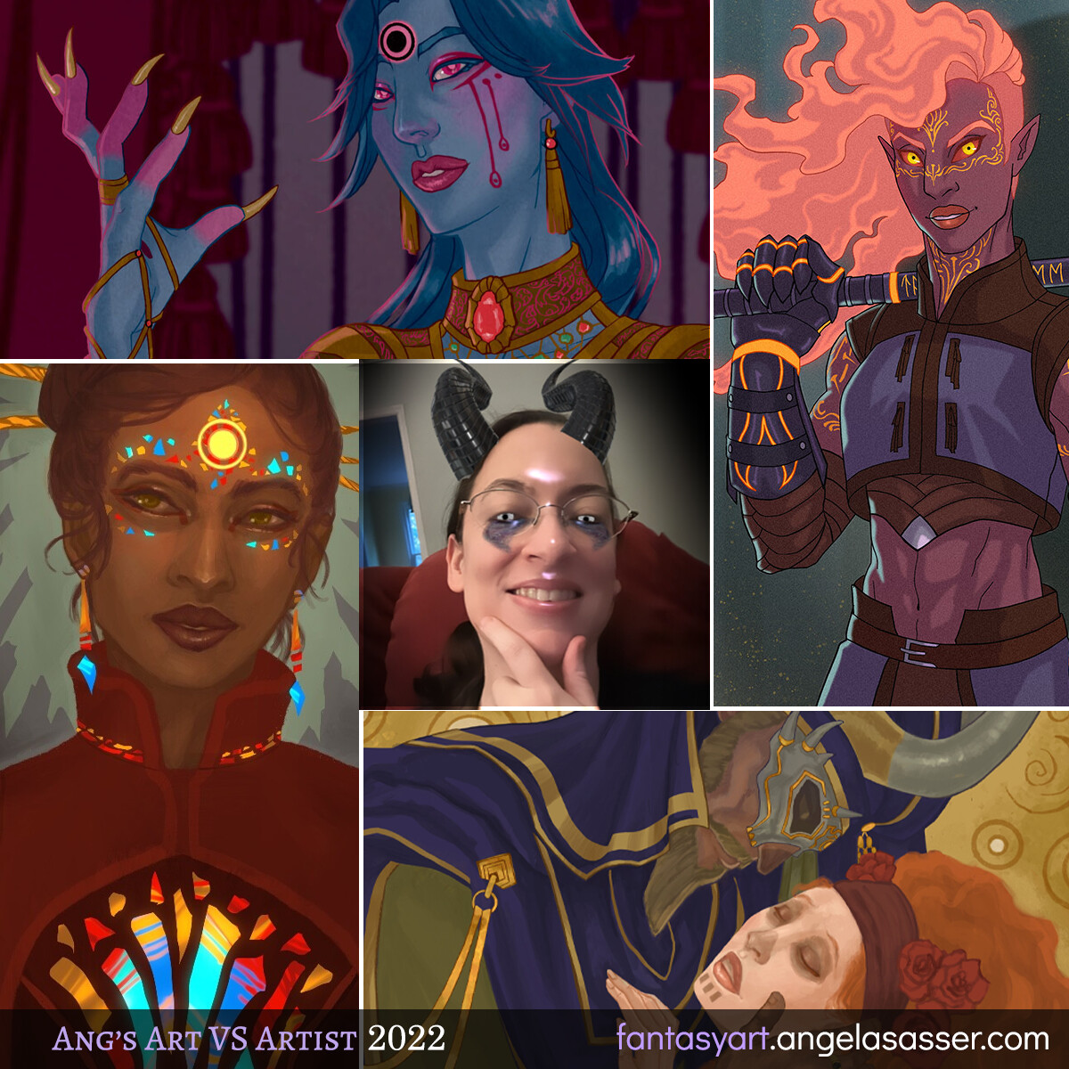 I spent most of 2022 recovering from shoulder surgery to repair torn tendons in my arm and shoulder, so I'm excited to have even been able to finish at least one thing a month this year! Without the stress of doing art for my SRS BIZNESS endeavors, I spent a lot of time just having fun allowing my muse to explore self-indulgent original character art and ttrpg stuff for Exalted and D&D.