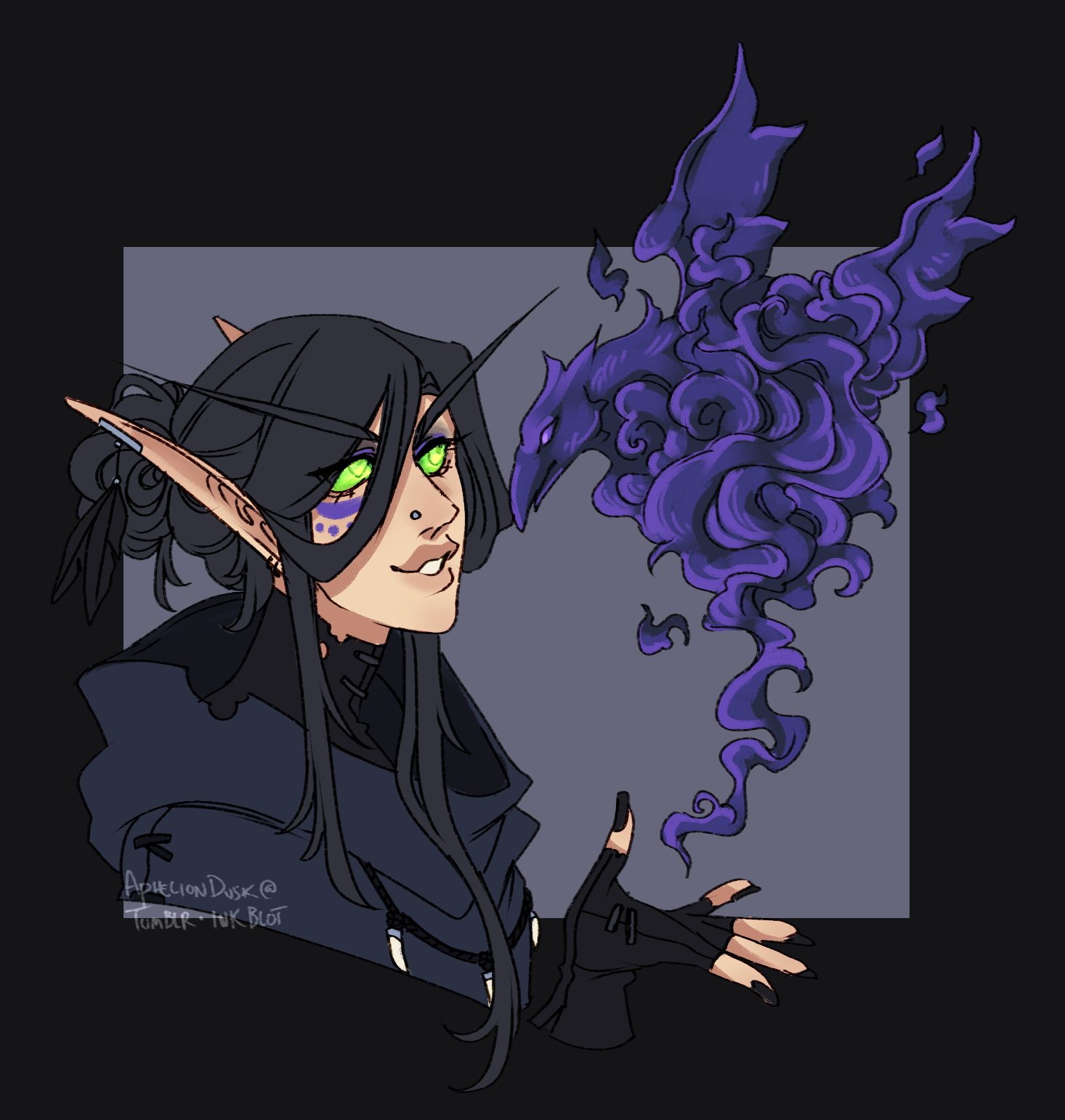 My Nightborne priest Grey, and Cammy's Blood Elf hunter, Matreis