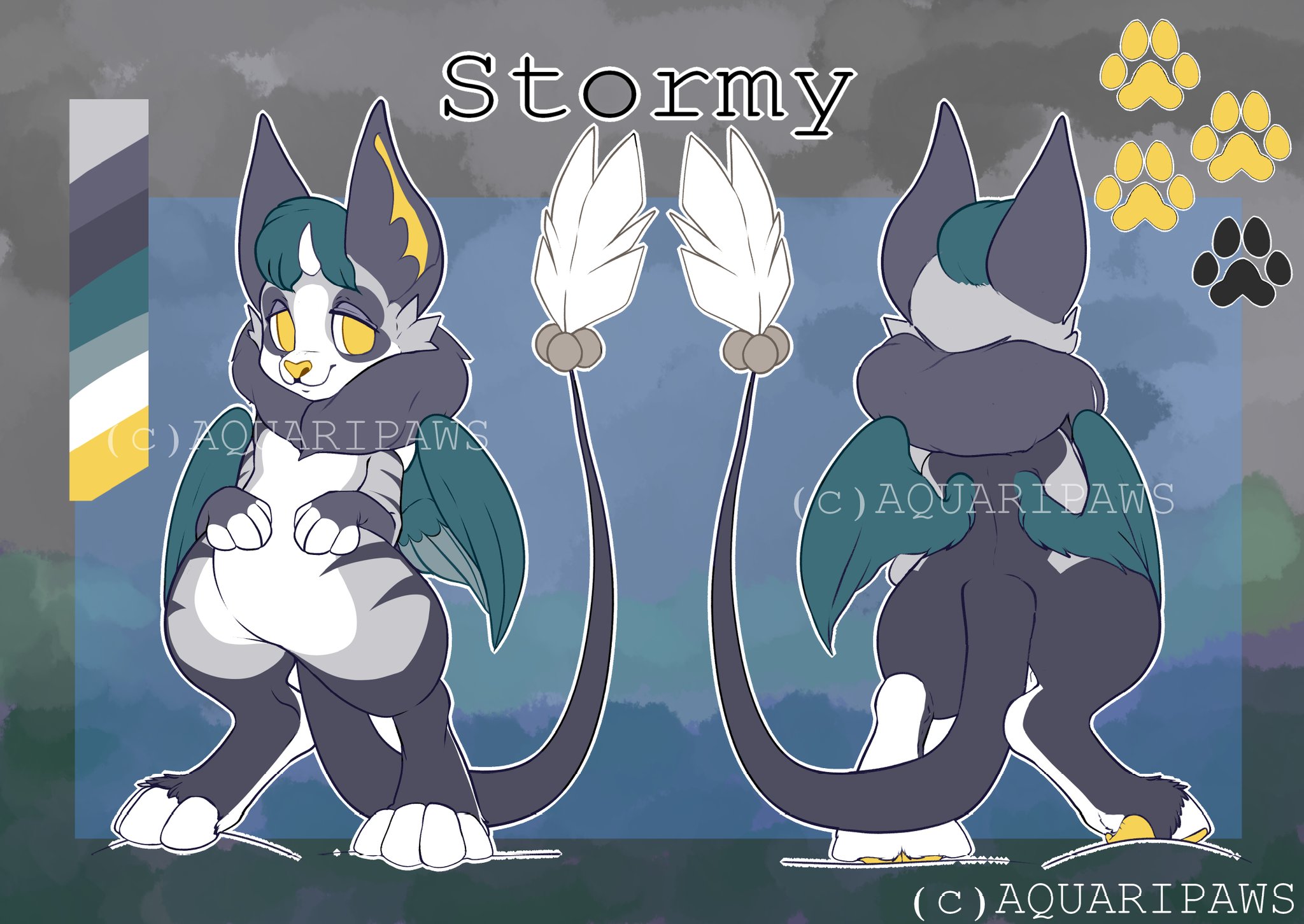 [Stormy The CatBird is Intellectual Property of AquariPaws, Do not Copy, or Repost my work without my Consent]Official Reference sheet of my fursona, Stormy, done by yours truly! Her colors come from a collage of Grey oceans and muted themes, coming together to show her reserved and sleepy personality. Stormy likes to aid the creatures and plants around her seaside clifface were she nests, possessing mild healing abilities that are powered by the moon which is always full in her world. [Stormy The CatBird is Intellectual Property of AquariPaws, Do not Copy, or Repost my work without my Consent]0 Comments 0 Shares 6 Views -