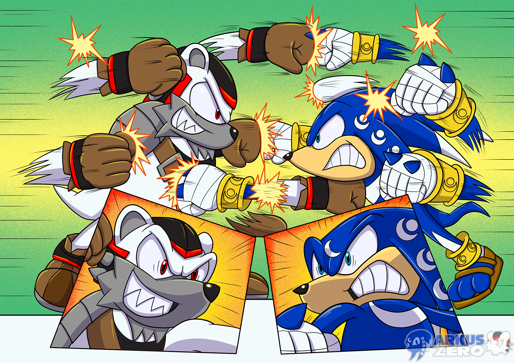 Been wanting to do this pic for a long time. Before anyone else says it, it is directly inspired by that Bark Vs Knuckles panel from the comics.